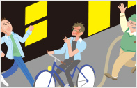 自行車如果跌倒就會受傷。儘量避免露出皮膚,戴安全帽、手套等。
