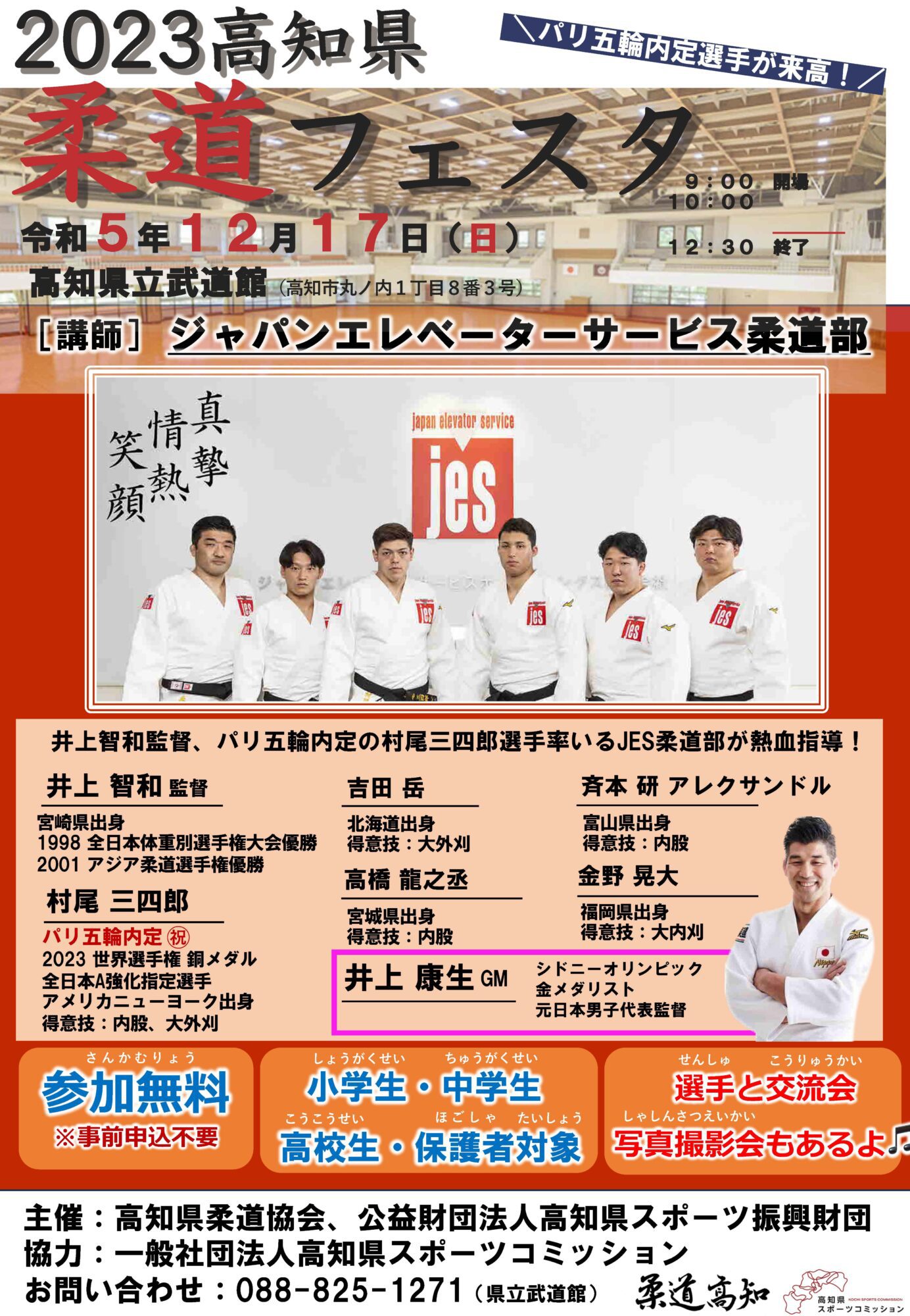 雪梨奧運會金牌獲得者原日本男子代表教練井上康生率領的、巴黎奧運會內定的村尾三四郎選手(90kg級)所屬的日本電梯服務柔道部作為講師,將舉辦與柔道教室和選手交流的柔道節,請務必參加。
