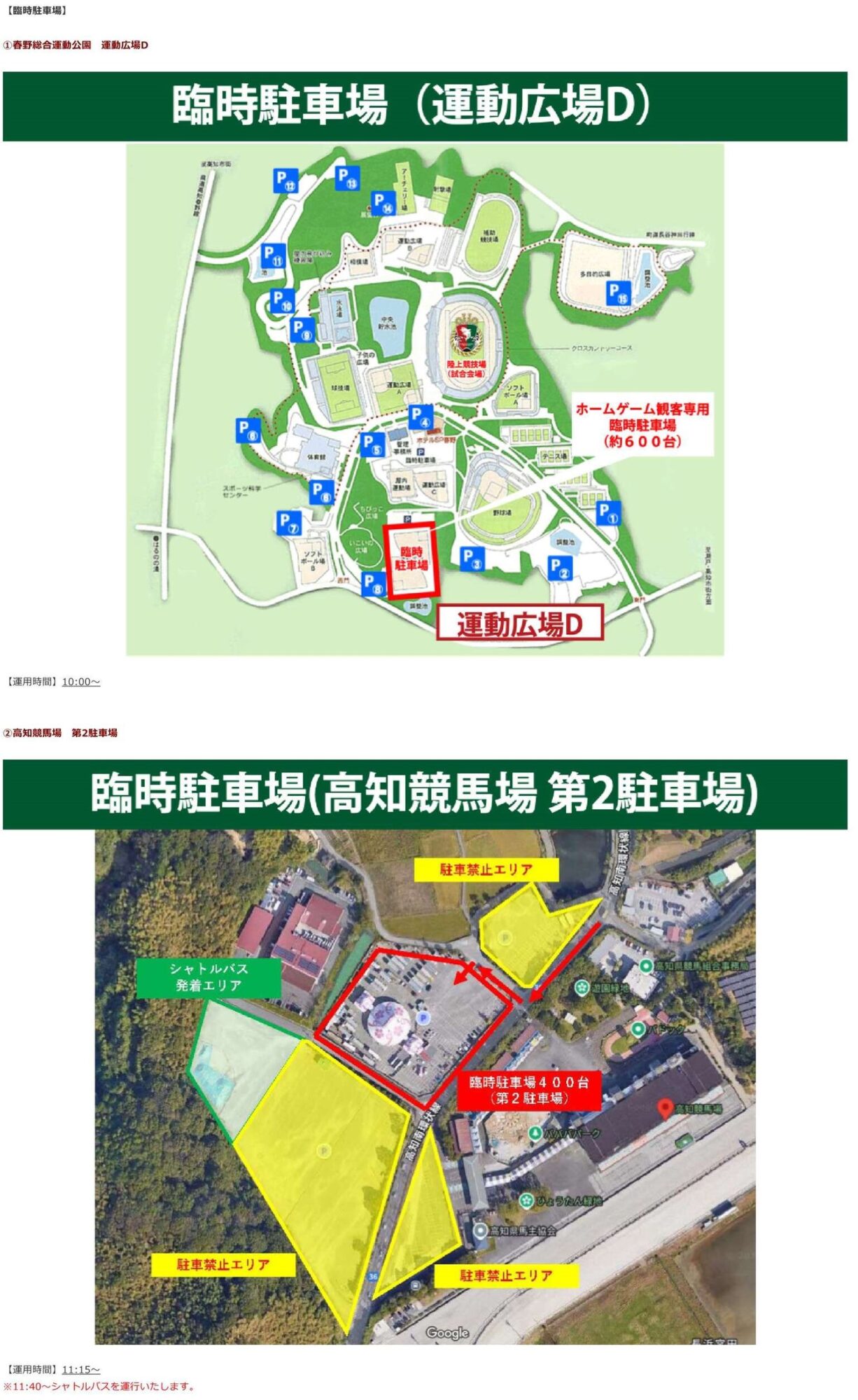 春野綜合運動公園(發) 高知站北口(著) 16:15 → 16:45 16:15~18:40之間有4台隨時運行 18:40(最後) → 19:10 ②高知賽馬場(第2停車場)~春野運動公園(多目的廣場)