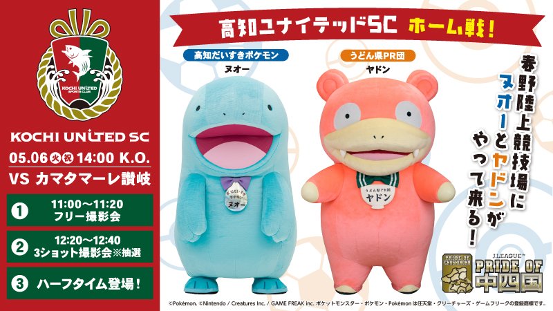 高知最喜歡的口袋妖怪”努奧和“烏冬縣PR團”Yadon將來春野陸上競技場遊玩!來玩的努奧、Yadon等人預定出演攝影會和儀式,期待著更多的人的光臨!