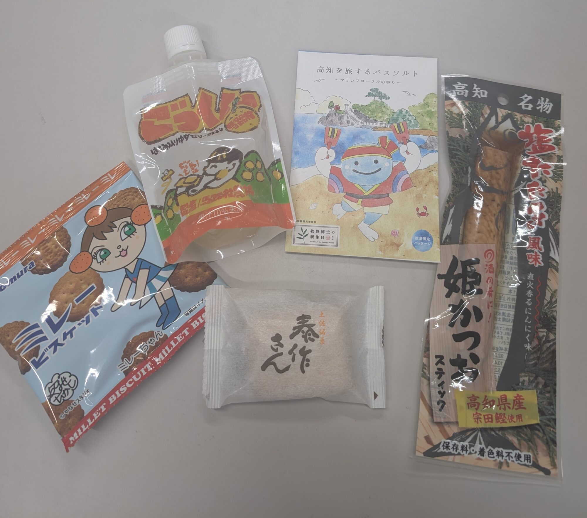 (贈品)御君果凍(柚子果凍)、姬鰹魚棒(鹽搗味)、土佐名牌糕點泰作、米勒餅乾、入浴劑