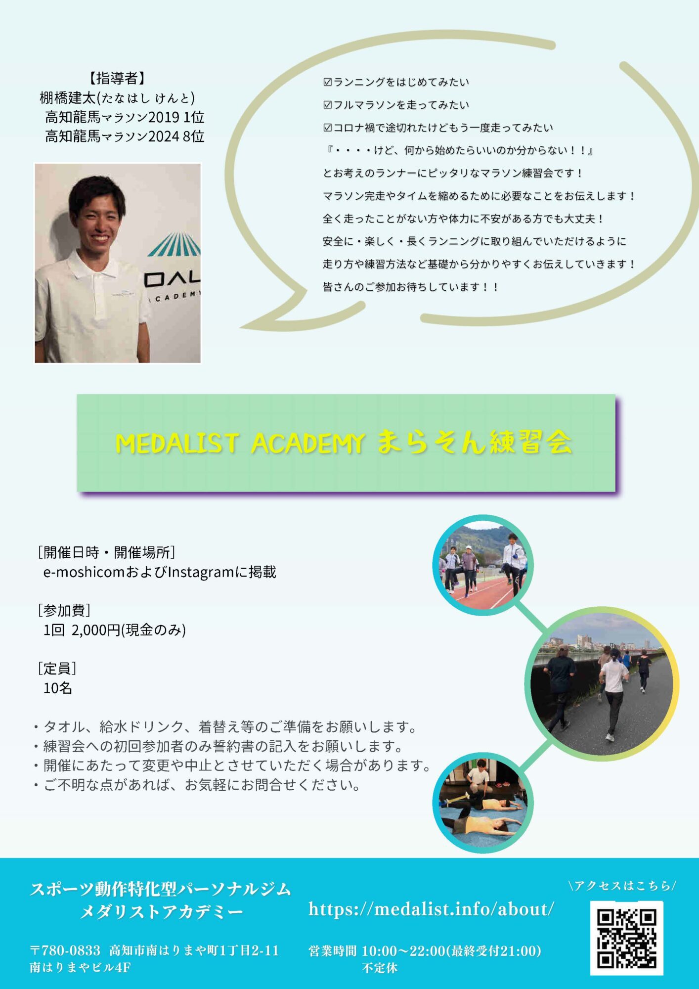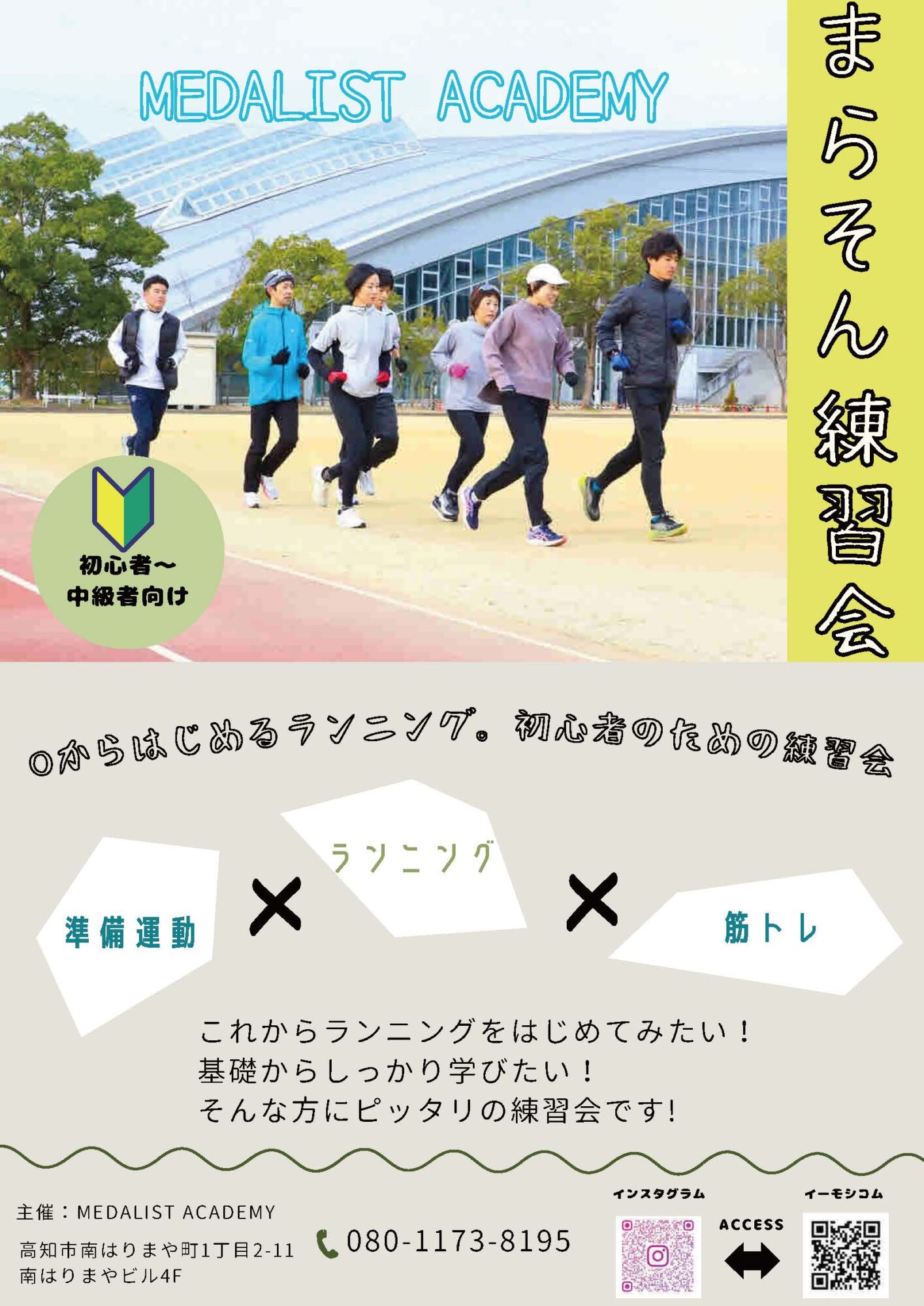 正在舉辦面向從0開始的初學者的跑步練習會。講師由高知龍馬馬拉松2019中獲勝的棚橋建太進行指導。沒有跑過的人請放心。簡單易懂地傳達跑步方法和練習方法。