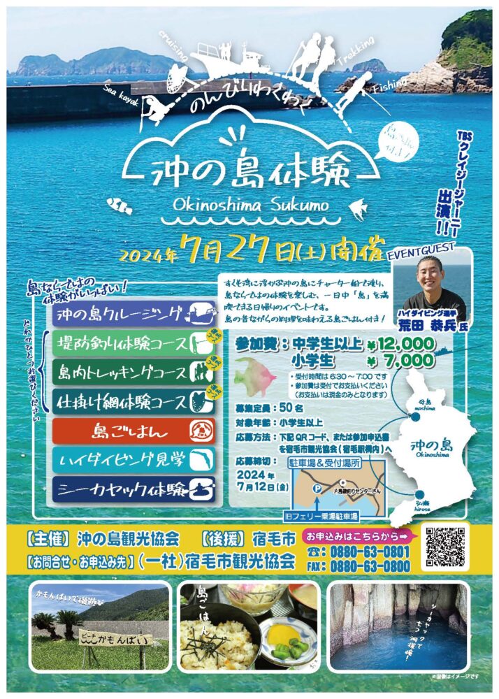 乘坐包租船渡到漂浮在宿毛灣上的沖之島,享受島上特有的體驗,是一整天都能享受“島”的一日遊活動。島上自古以來的料理島飯也能品嘗到,請務必參加。