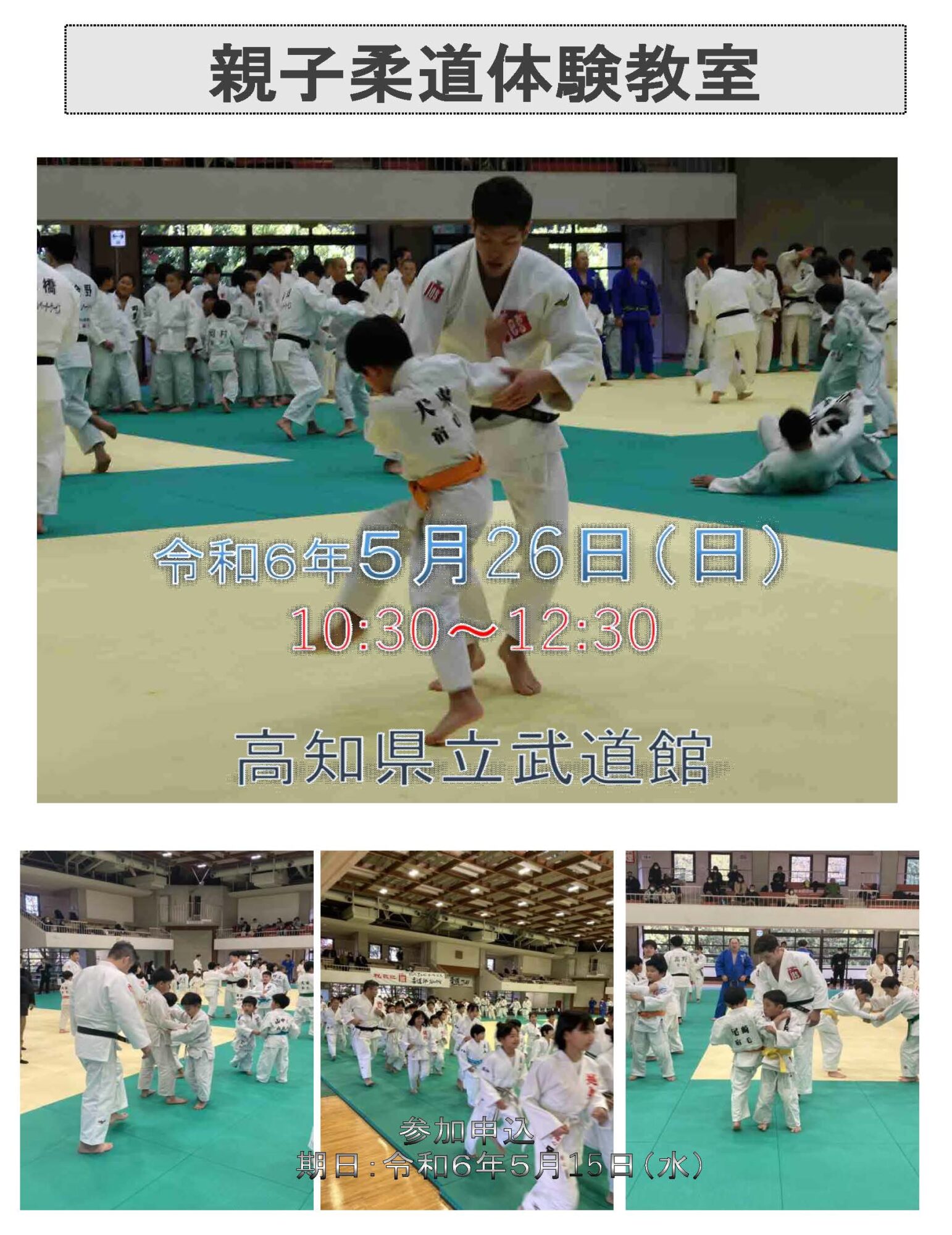 希望大家能愉快地進行運動遊戲的訓練、講師的演示和實際技術指導,愉快地親近柔道,請務必趁這個機會參加。
