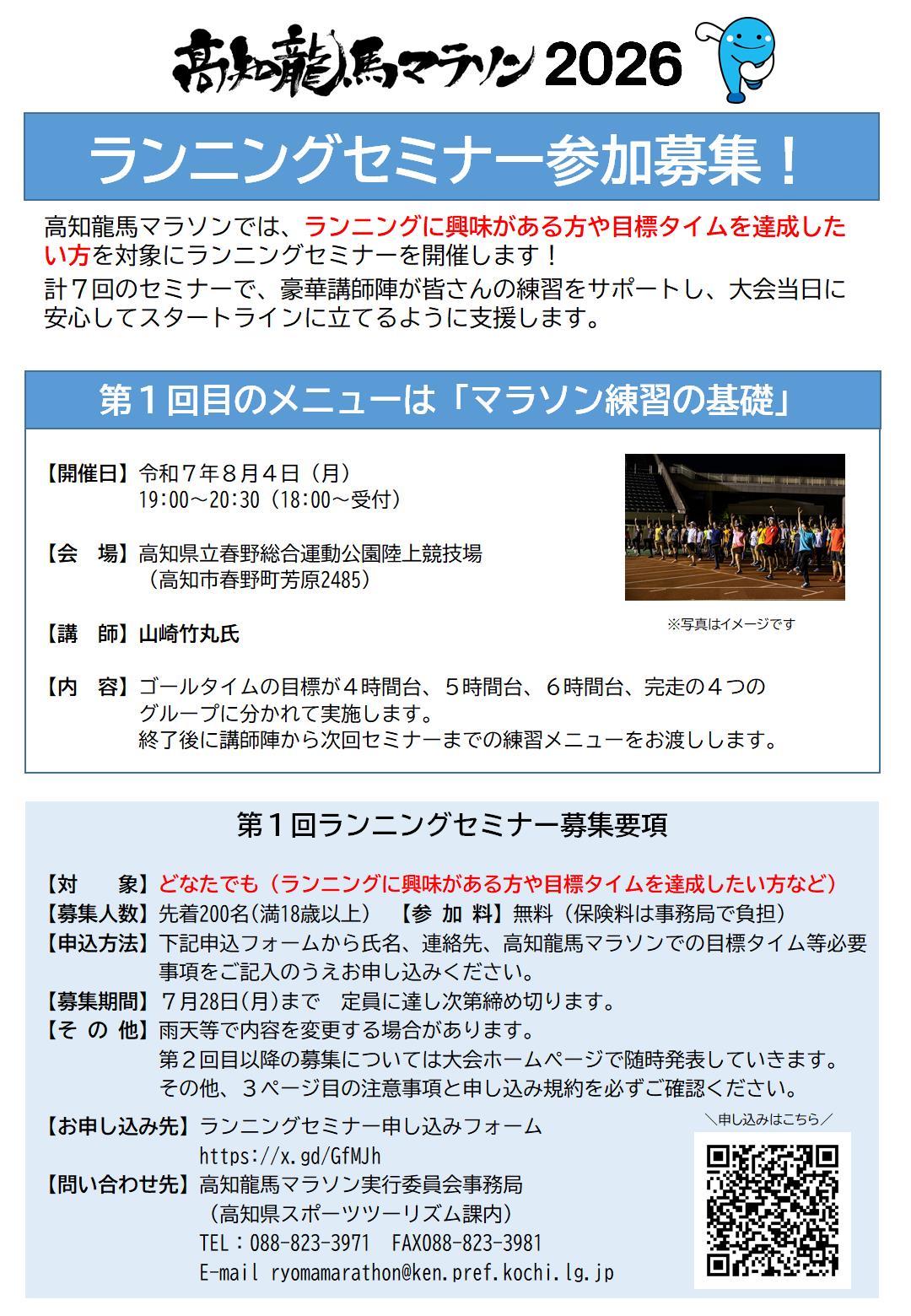 高知龍馬馬拉松2026第1屆跑步研討會參加者募集!