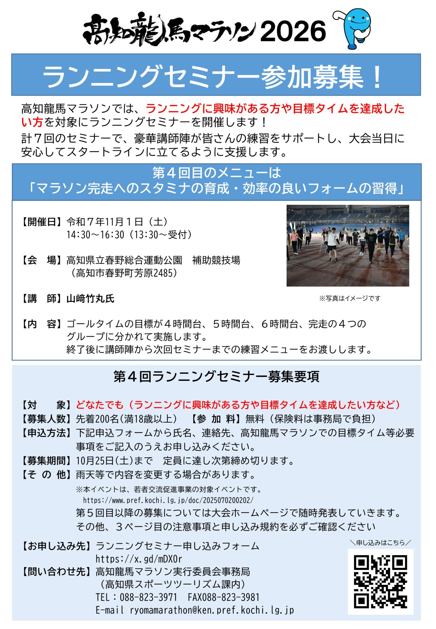 高知龍馬馬拉松2026第4屆跑步研討會參加者募集!