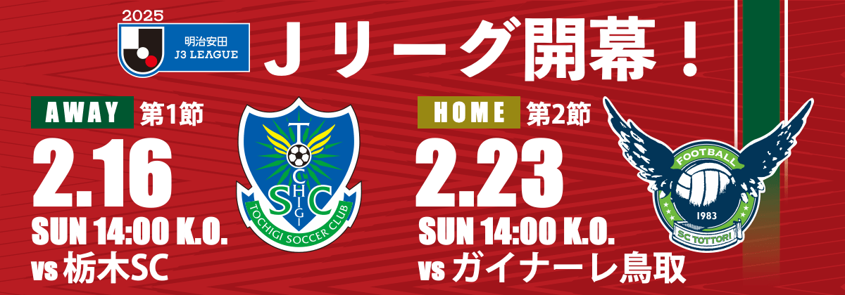 2月16日(星期日)的客場開幕戰(VS櫪木SC)遺憾地以0-1失敗了。
