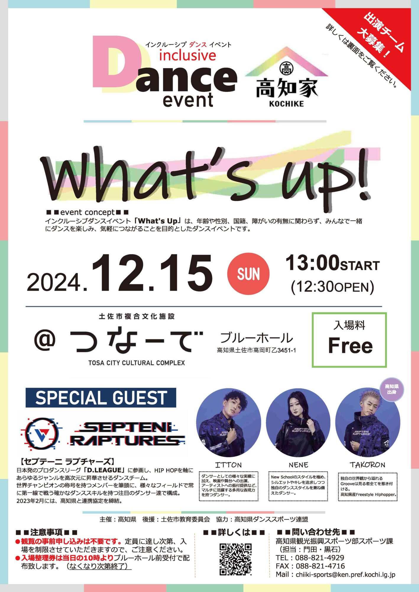 墨水社會教育活動“What's Up”是為了實現共生社會,不論年齡、性別、國籍、身心有無障礙,各種各樣的人一起享受舞蹈,以輕鬆愉快地連結為目的的舞蹈活動。