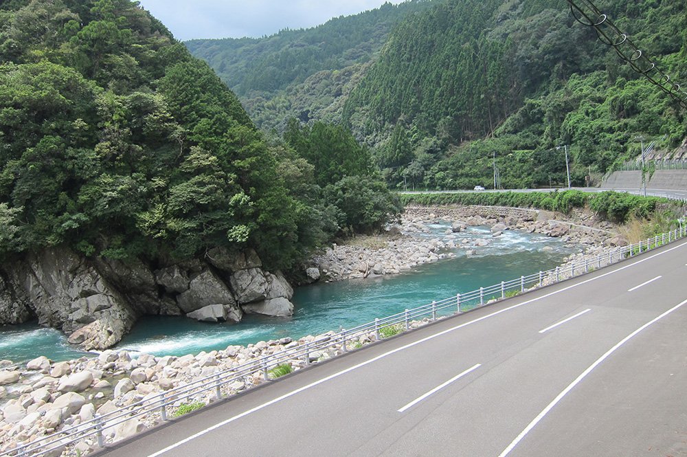 從道之驛梅裡,在早明浦水庫北岸行駛...