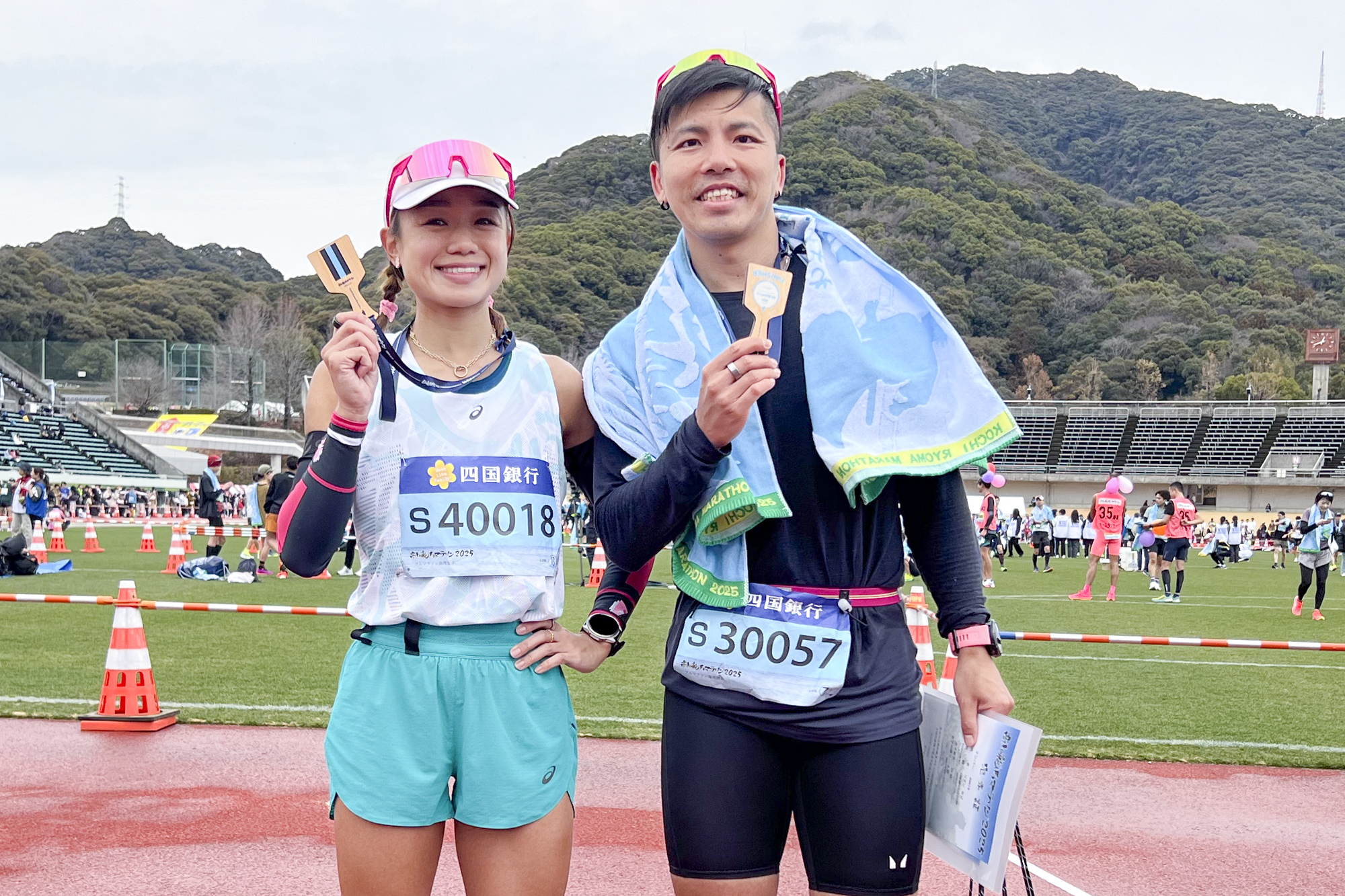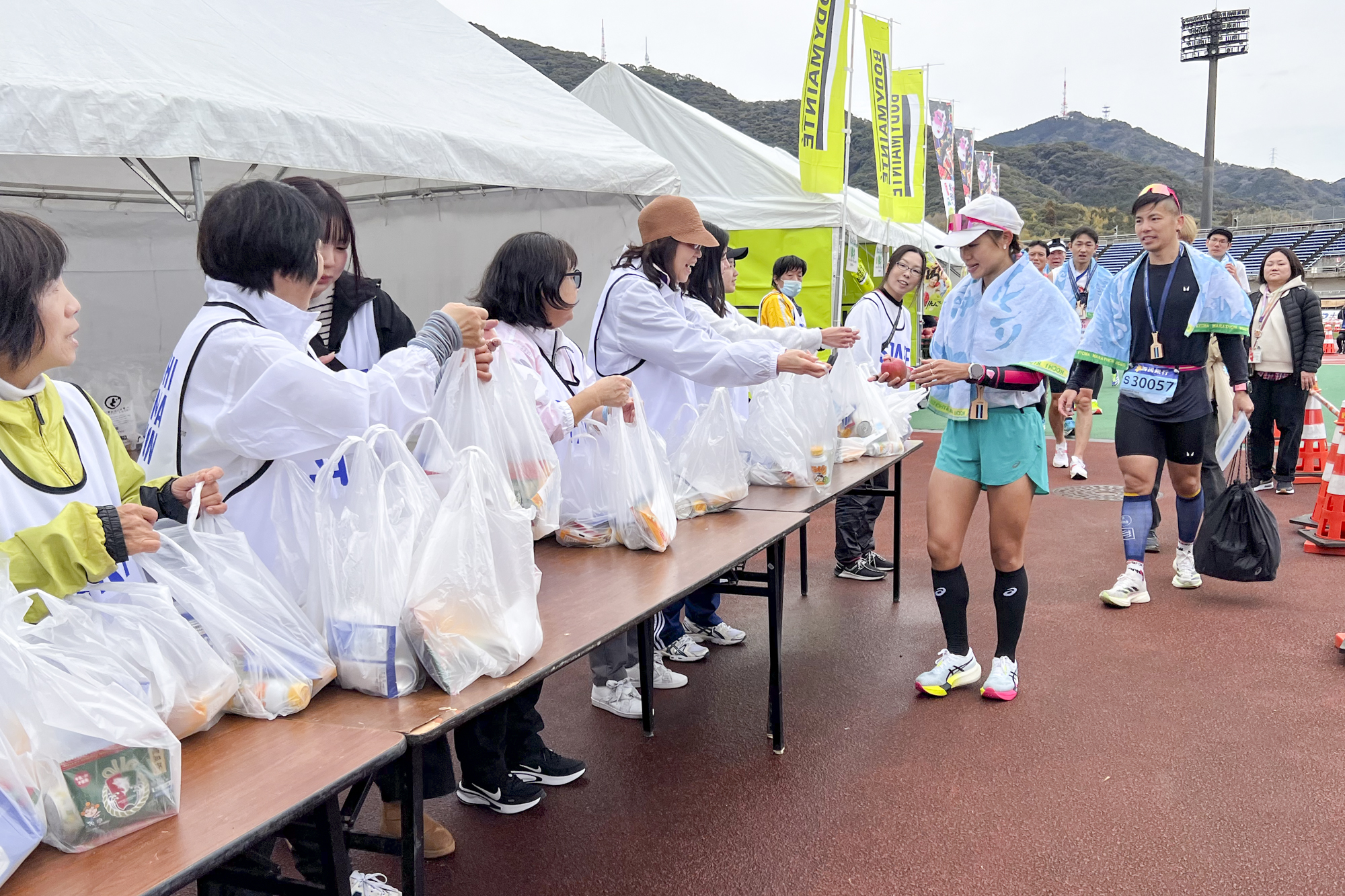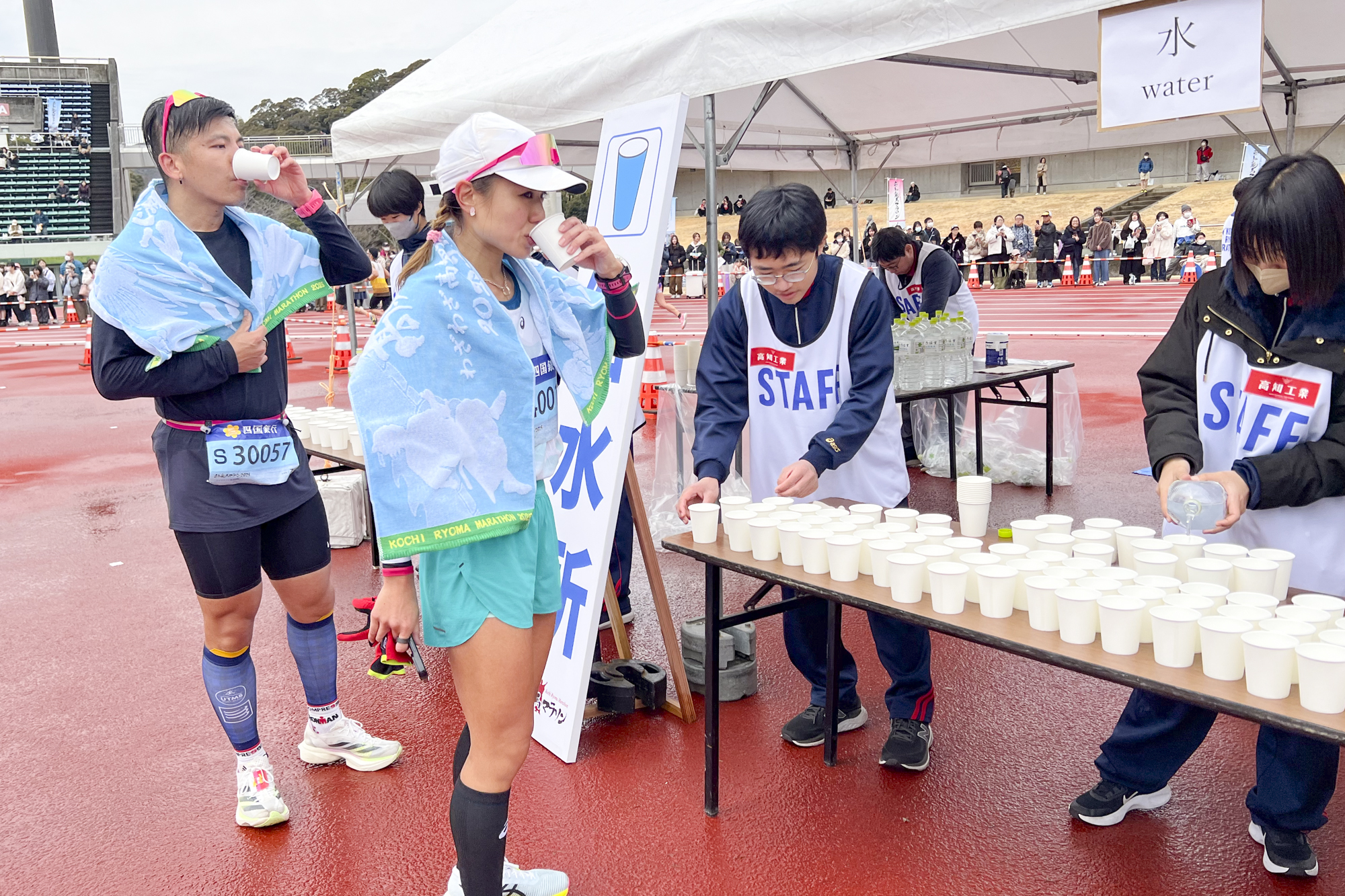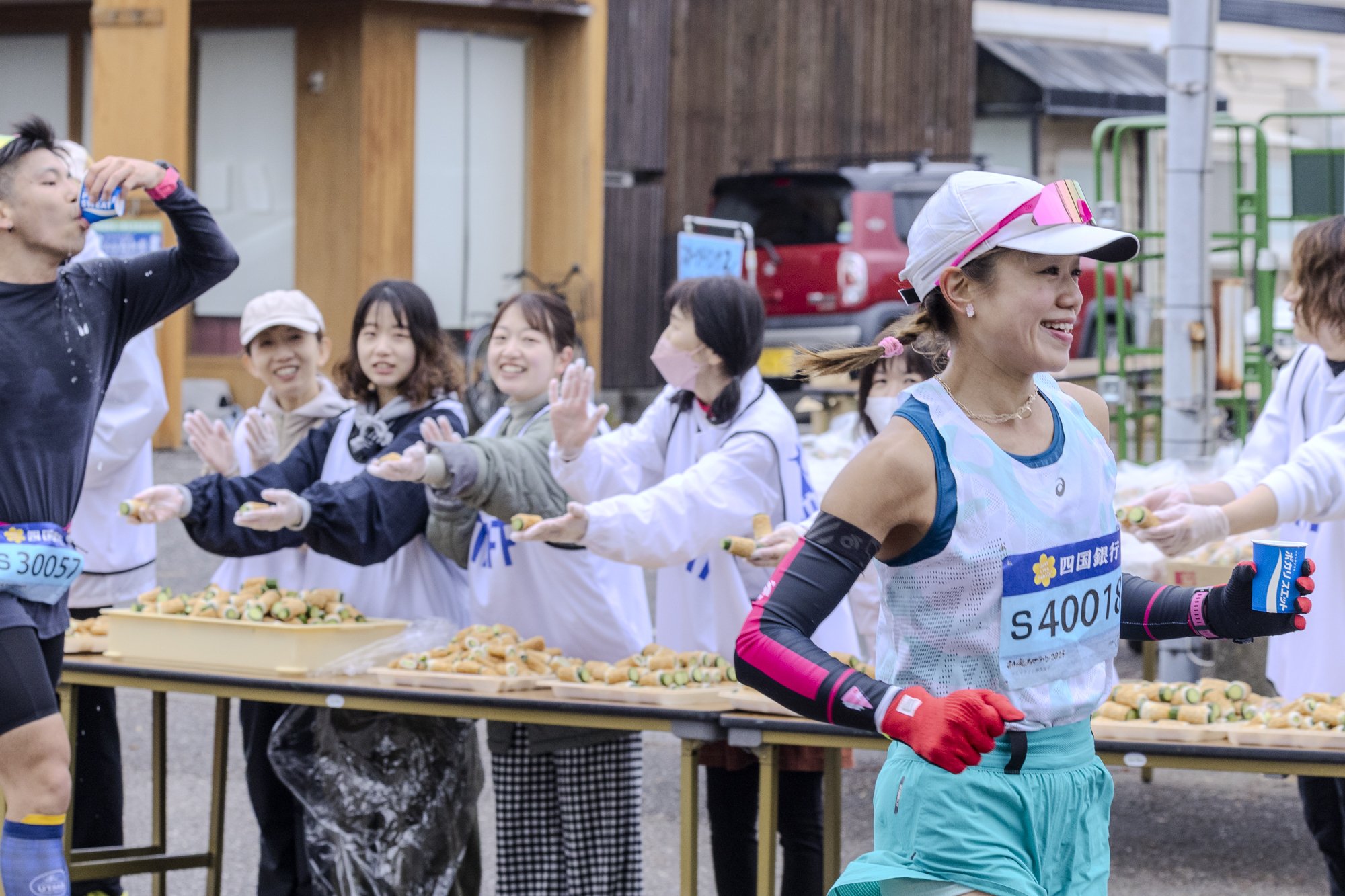 莉安說:“我覺得供水站很充足,運營很可靠。我認為這是一個可以安心奔跑的大會。艾德這次吃了麵包。除此之外還準備了很多柚子汁、鰹魚飯等高知特有的東西,很開心呢!”。