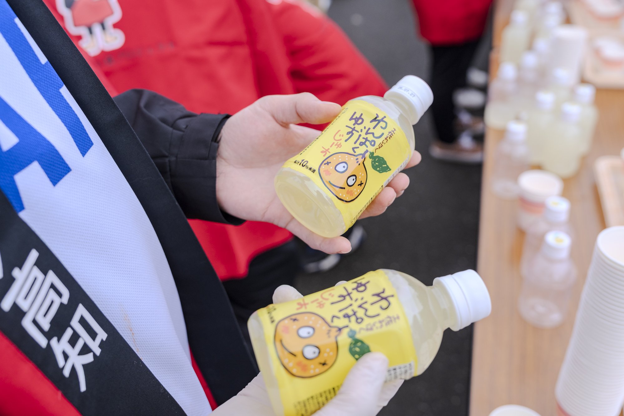 到結束後的跑壘員服務區。高知縣特產的柚子果汁“御君馬路村”和用芋頭做的點心“鹽拳頭”等將作為禮物。“我很高興收到很多禮物!”莉安說。