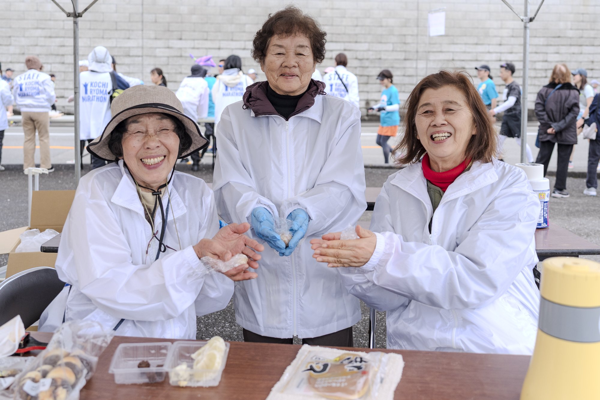 除普通市民外,高知龍馬馬拉松2025的路線沿線有7個沿途應援隊為長跑者加油!吹奏樂演奏和YOSAKOI舞蹈表演等,展示了當地的孩子們和當地的志願者為了這一天拼命練習的成果,使大會氣氛高漲。