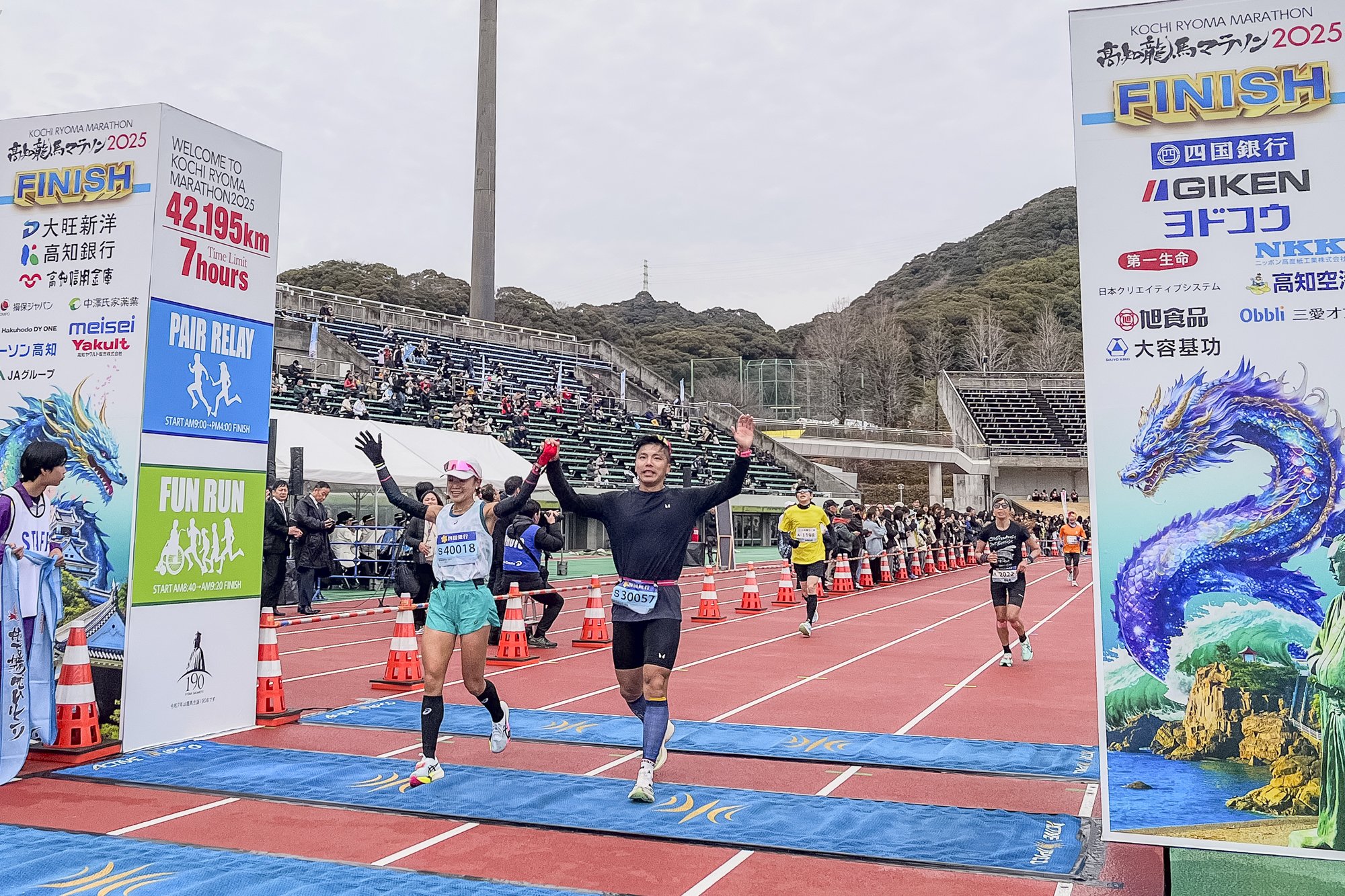 高知龍馬馬拉松是在高知縣高知市、南國市、土佐市的42.195km上,約有1萬名市民跑者跑的早春馬拉松大會。2025年2月16日(星期日),在高知市中心的起點,今年也聚集了很多跑壘員。