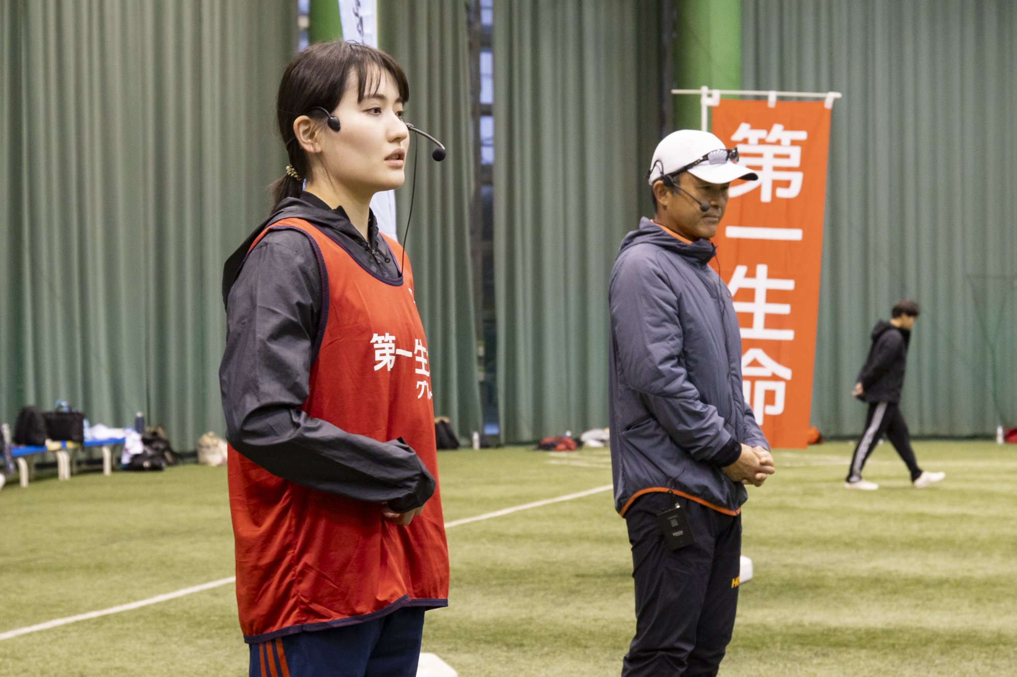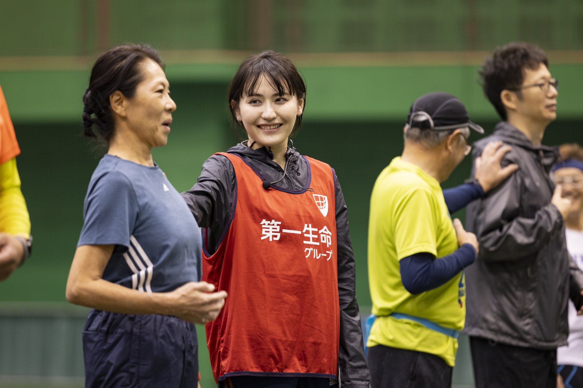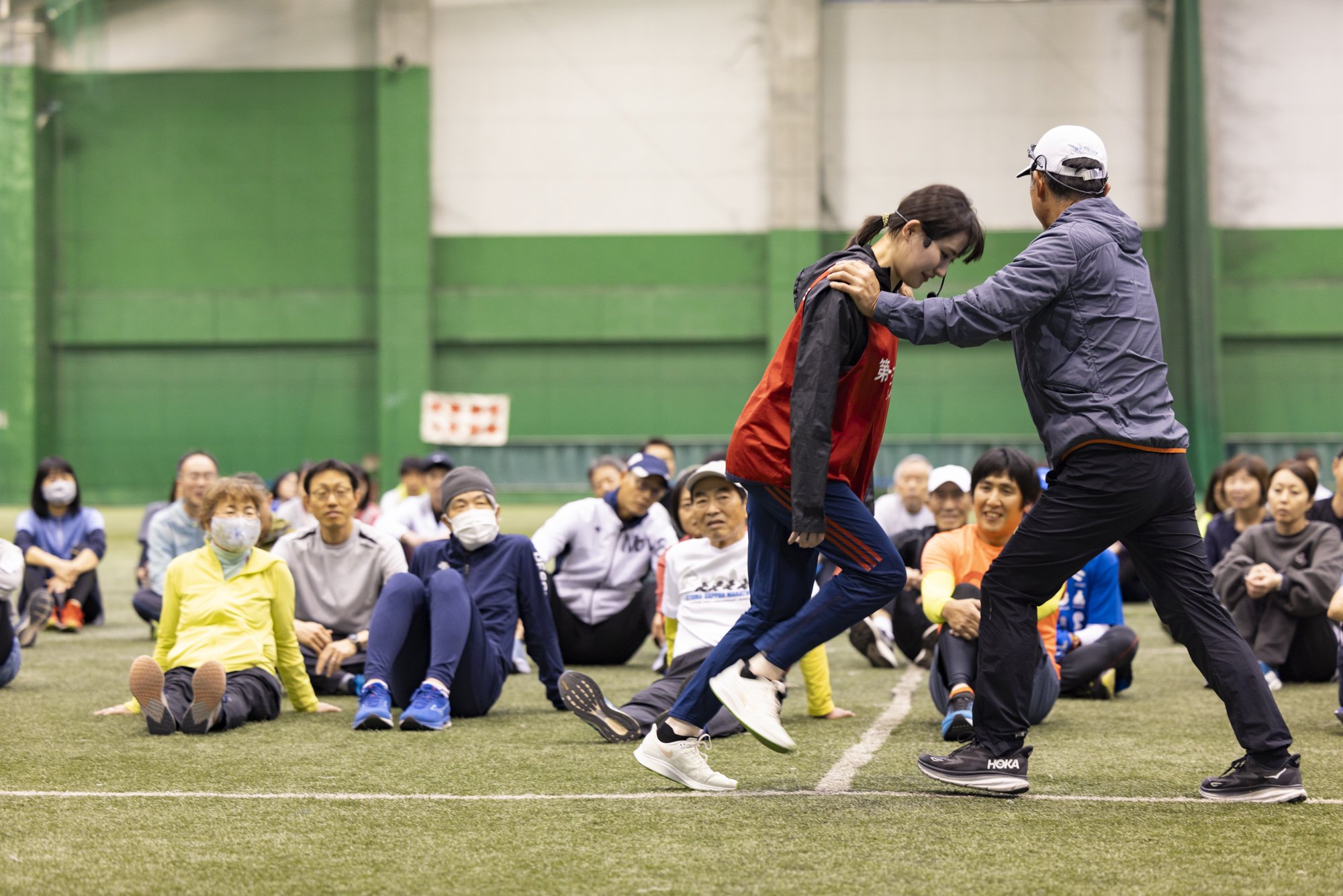 這次得到了第一生命株式會社的協助,現役時代活躍在第一生命團體女子田徑部的佐野英里佳作為助手參加了研討會。“今天,我想如果能幫助大家刷新記錄就好了!”研討會開始了。