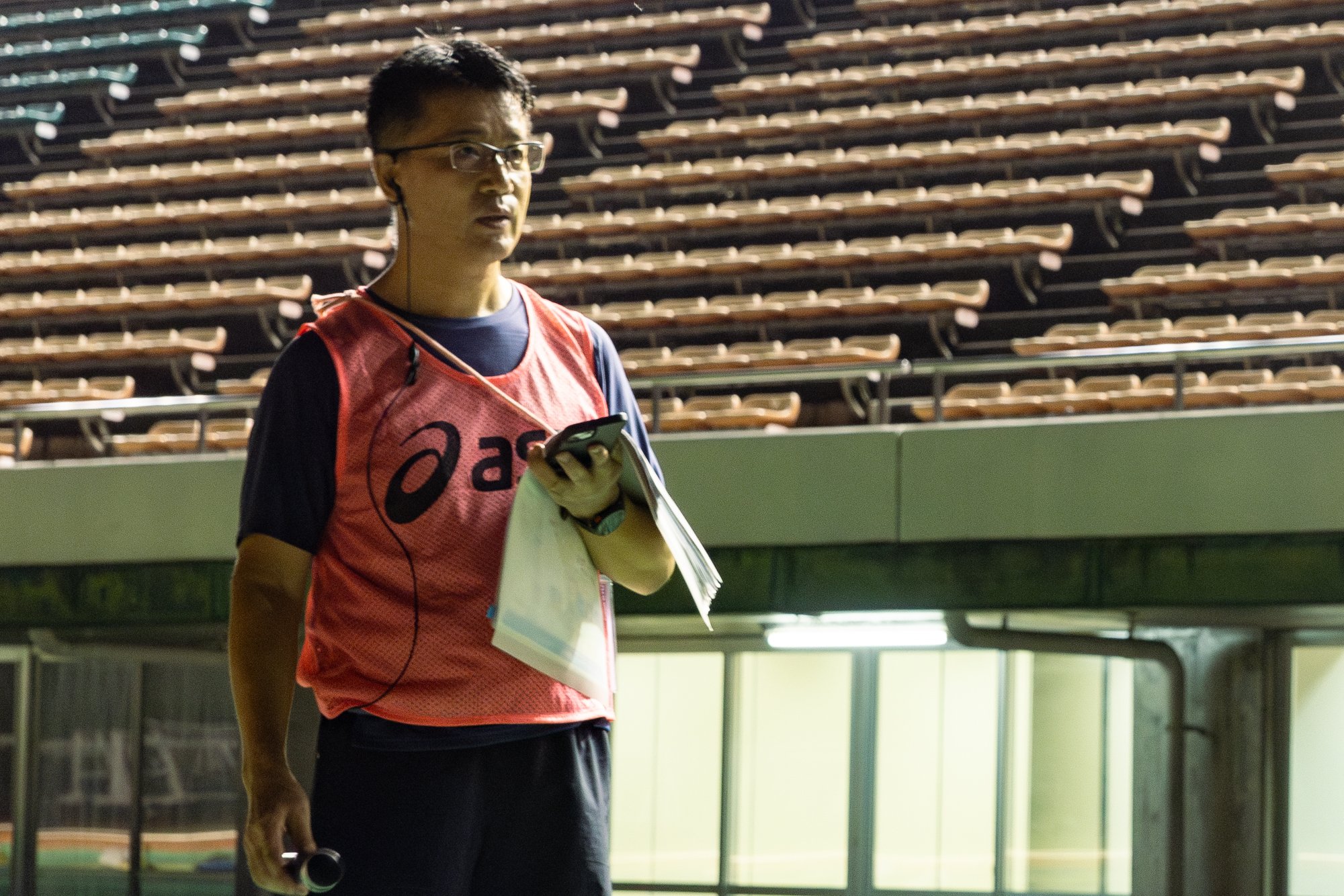 和松本先生一起,中級選手們也繞著卡車來回走。松本先生說:“請大家按照自己的節奏奔跑吧。”。“為了不只靠腳跑,請好好地揮動手臂”“全程馬拉松很長。不要進入前半部分,下半場留下體力吧”。