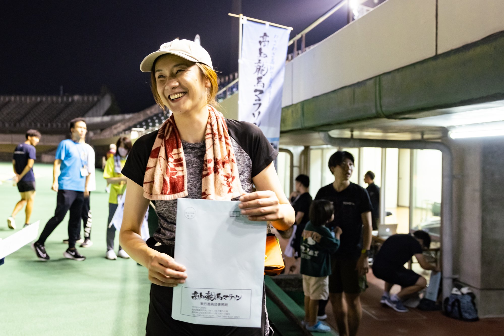 “工作單位的同事一直在參加龍馬馬拉松,自己也想跑一下,但是已經過了5.6年了。這次,我決心為了紀念50歲而跑步,所以申請了跑步研討會”。
