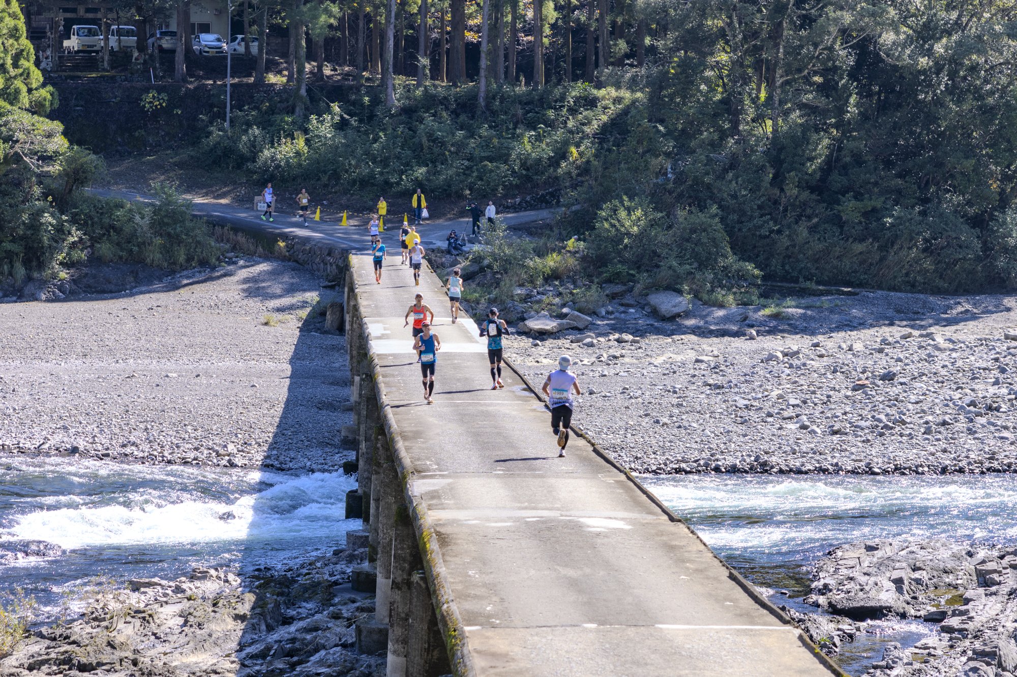 被列為日本3大奧特馬拉松之一的四萬十川奧特馬拉松,正如其名,是沿著四萬十川跑過去的日本屈指可數的奧特馬拉松。準備了100公里和60公里兩個部門,來自全國各地的跑壘員們在美麗的風景中享受著嚴酷的比賽。路線的特徵是四萬十川的全景景觀和兩個“沉降橋”。漲水時穿過沉入河裡的這座橋,並且在路線最難的地方開始後,越過了最大高低差600米的山間,對於有經驗的跑壘員來說也是一個頑強的挑戰。
