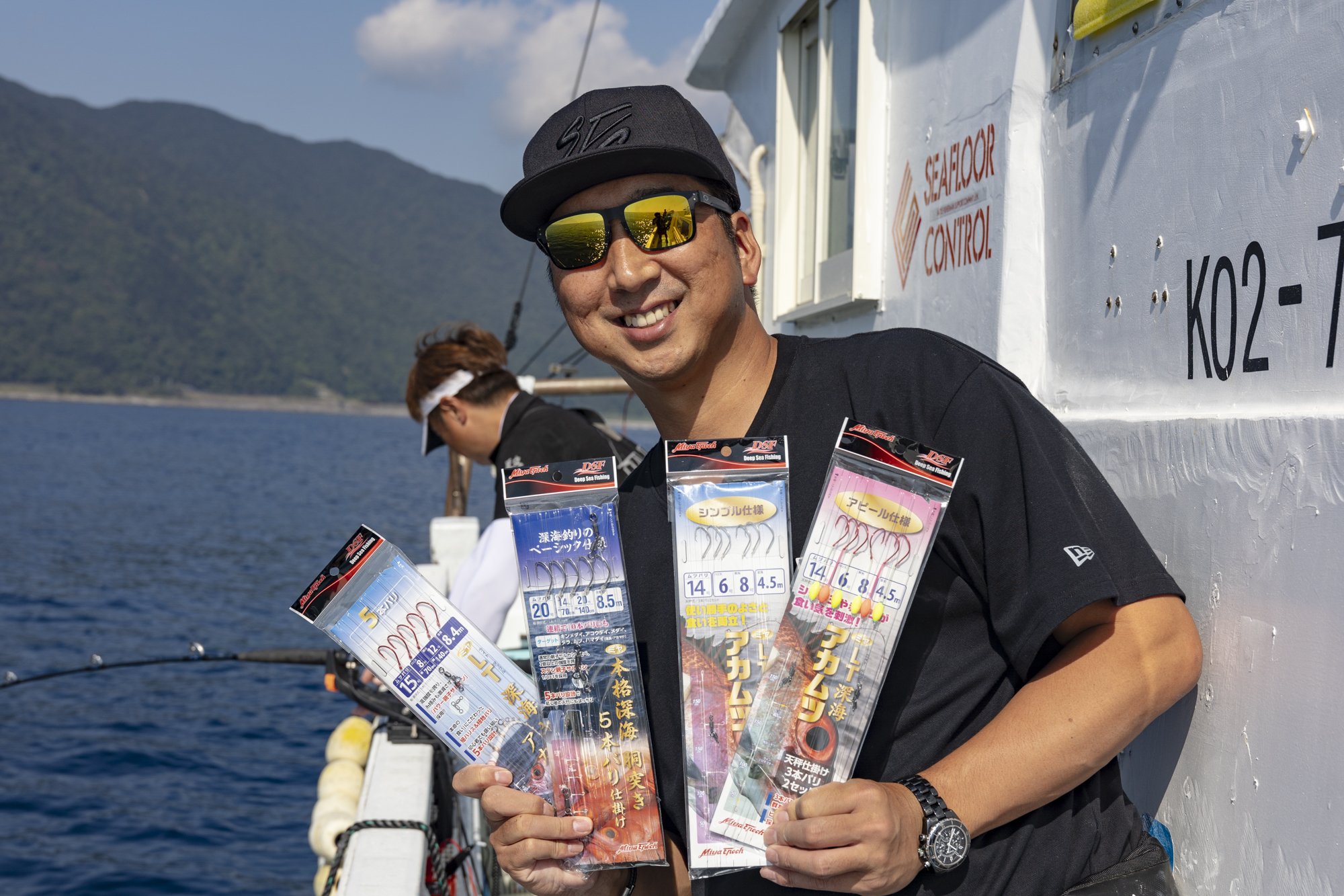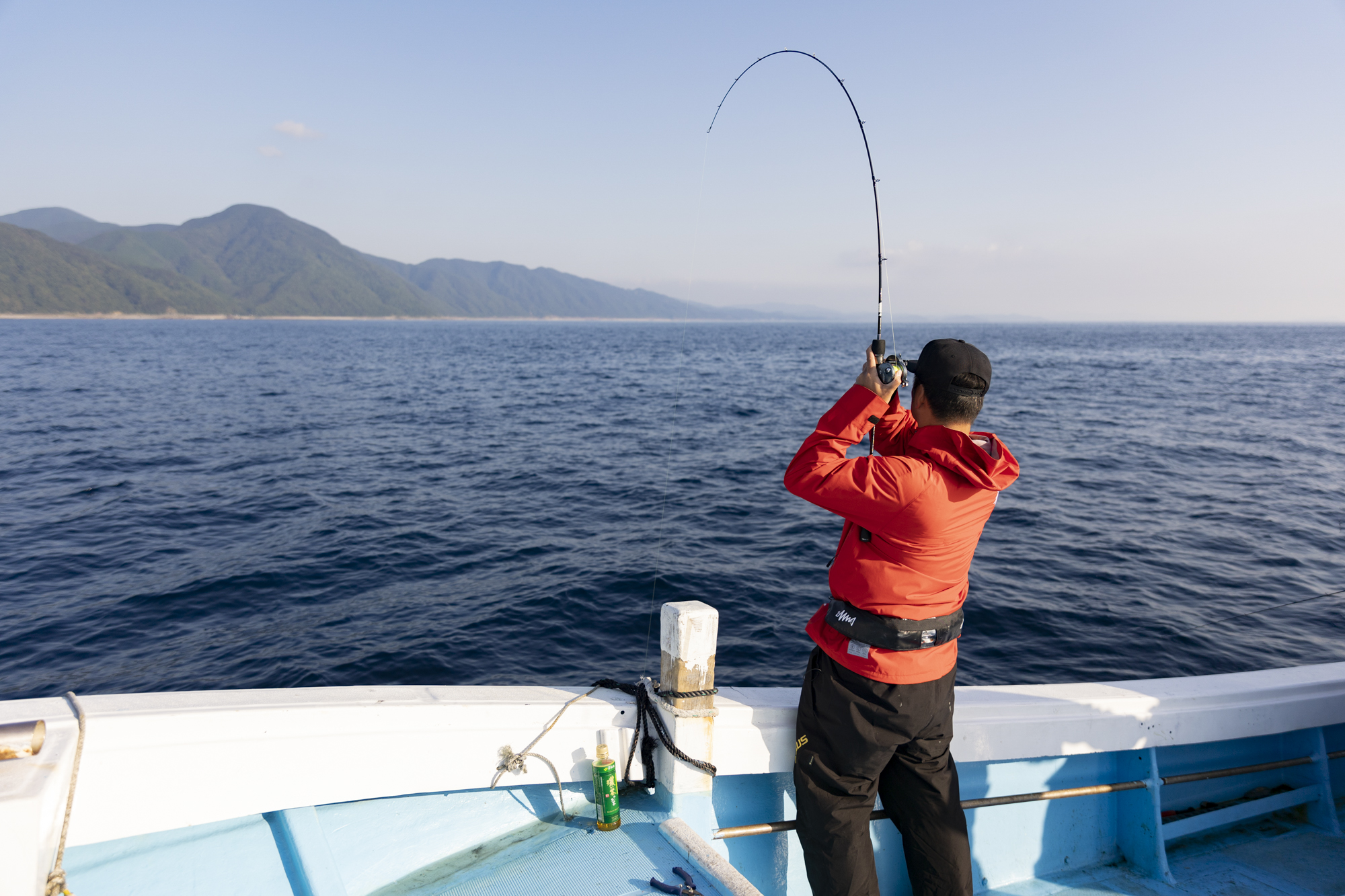 “我想一邊接受第一次的慢跑和指導一邊努力。上次沒能釣到,這次一定要釣魚哦!”藤川先生說。順便說一下,藤川先生對從漁港出發約10分鐘到達積分感到吃驚的樣子。“我很驚訝。明明是可以看到岸邊的情況,卻問了船長,據說這裡的海的深度是260米!非常深啊。室戶真厲害啊”。