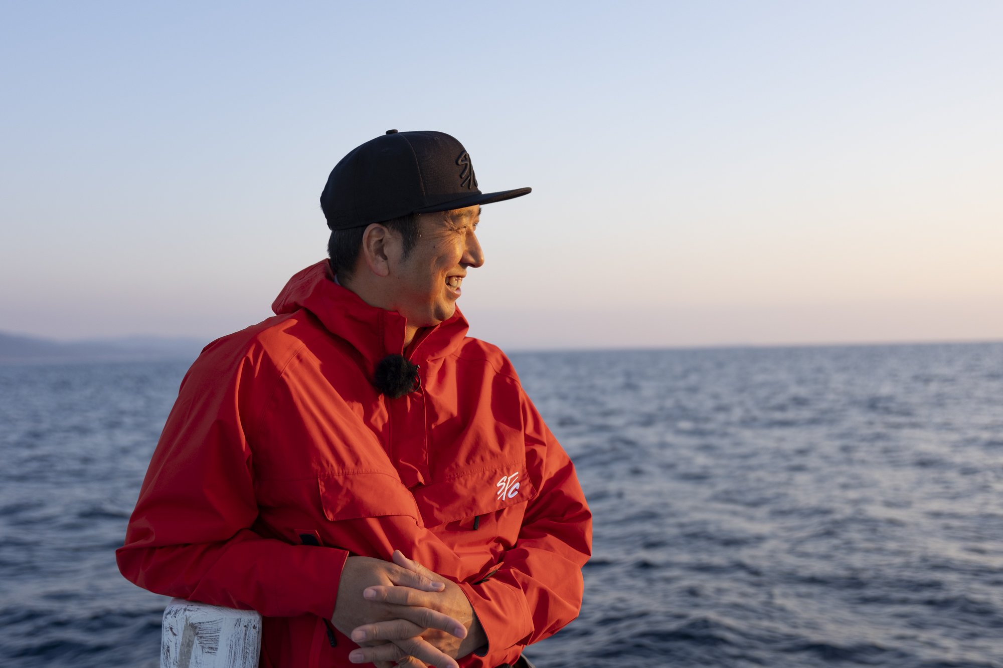 乘坐遊船前往室戶海域。迎接藤川先生的“不倒翁朝日”,是因海面和大氣的溫差而光線折射,太陽看起來像不倒翁的海市蜃樓現象之一。