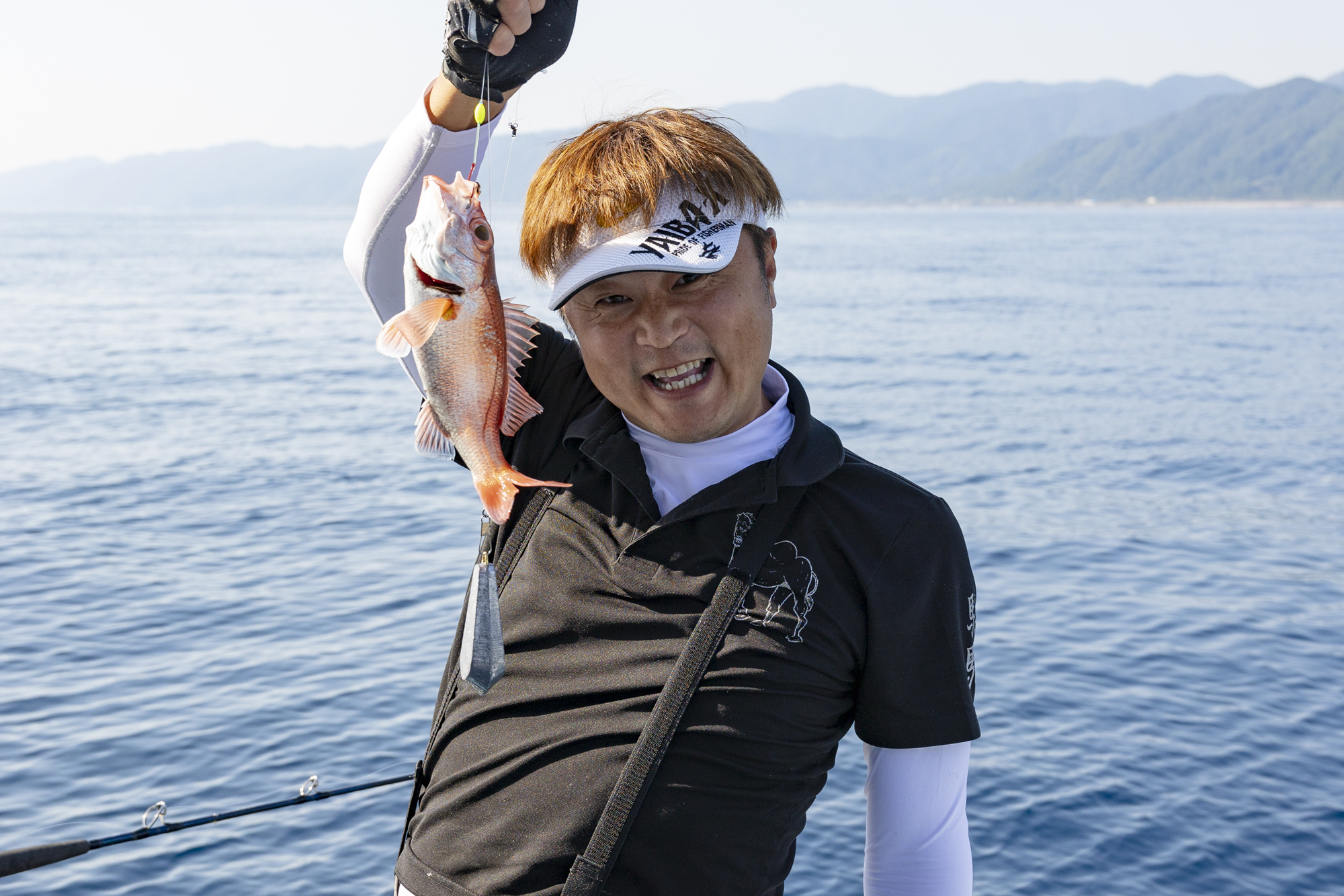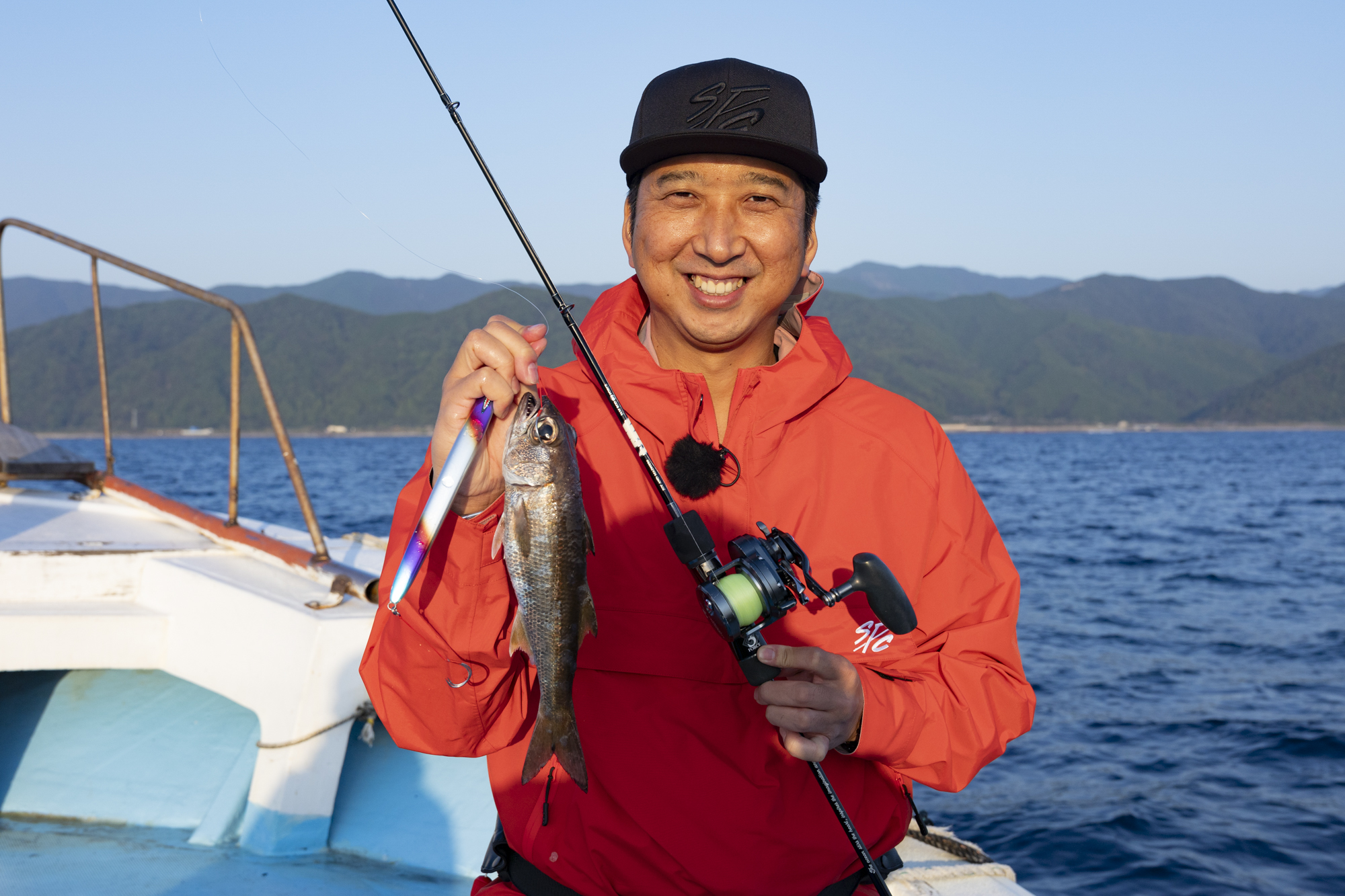 坐船約10分鐘,到達第一個點。這次我們將使用高知縣的金屬吉格製造商“床上控制”的吉格和卷軸等,挑戰作為高級魚而聞名的阿卡姆茲的慢速攀登。