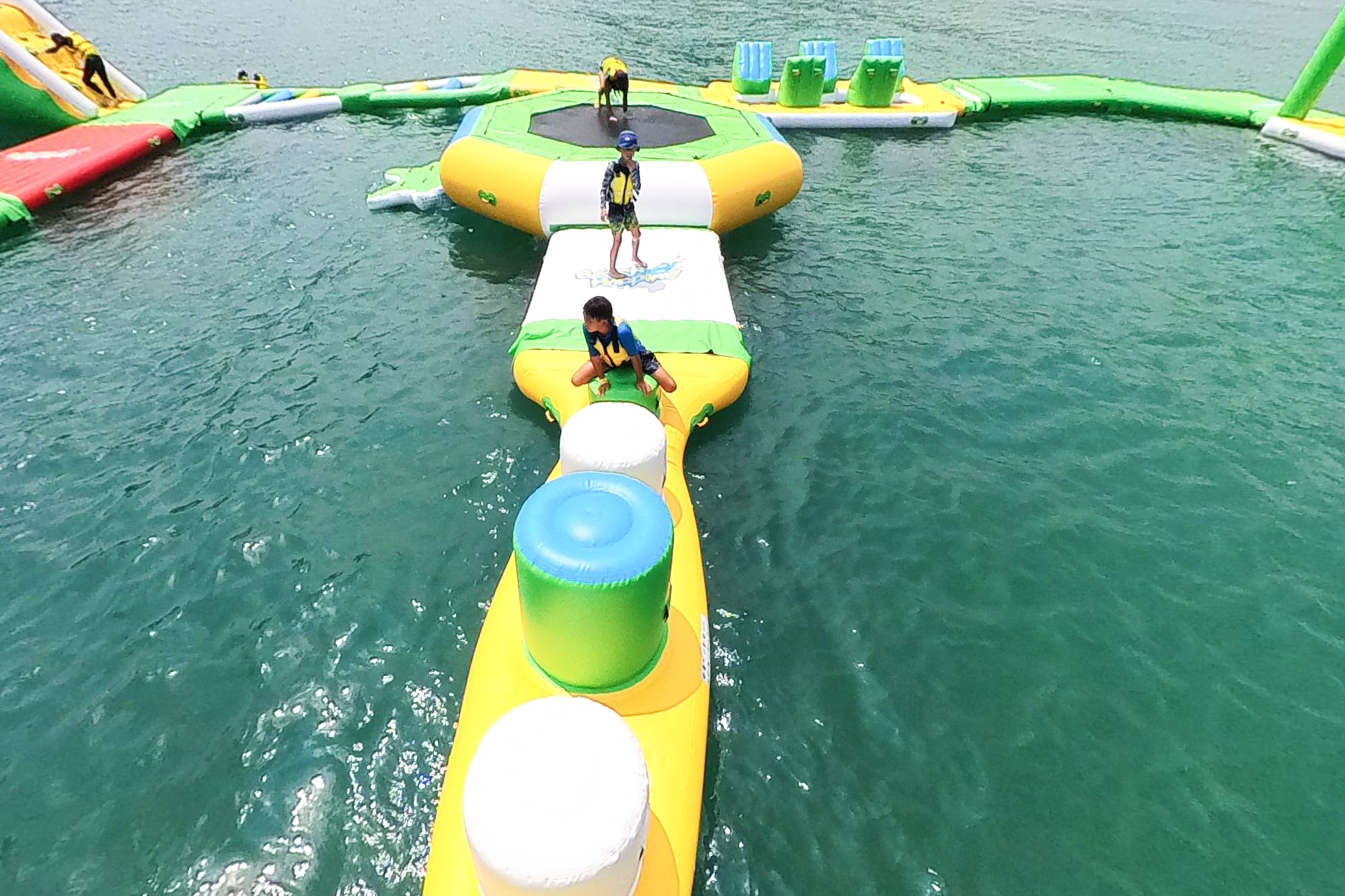 巨大的體育運動可以低估為只是在空氣中膨脹的面向兒童的遊樂設施。孩子可以輕鬆通過,但是大人在苦戰的區域,無論幾次都想跳下去的海的滑梯等,有很多讓人著迷的要素。正因為是在海上的體育運動,所以大家都能享受的海上娛樂。