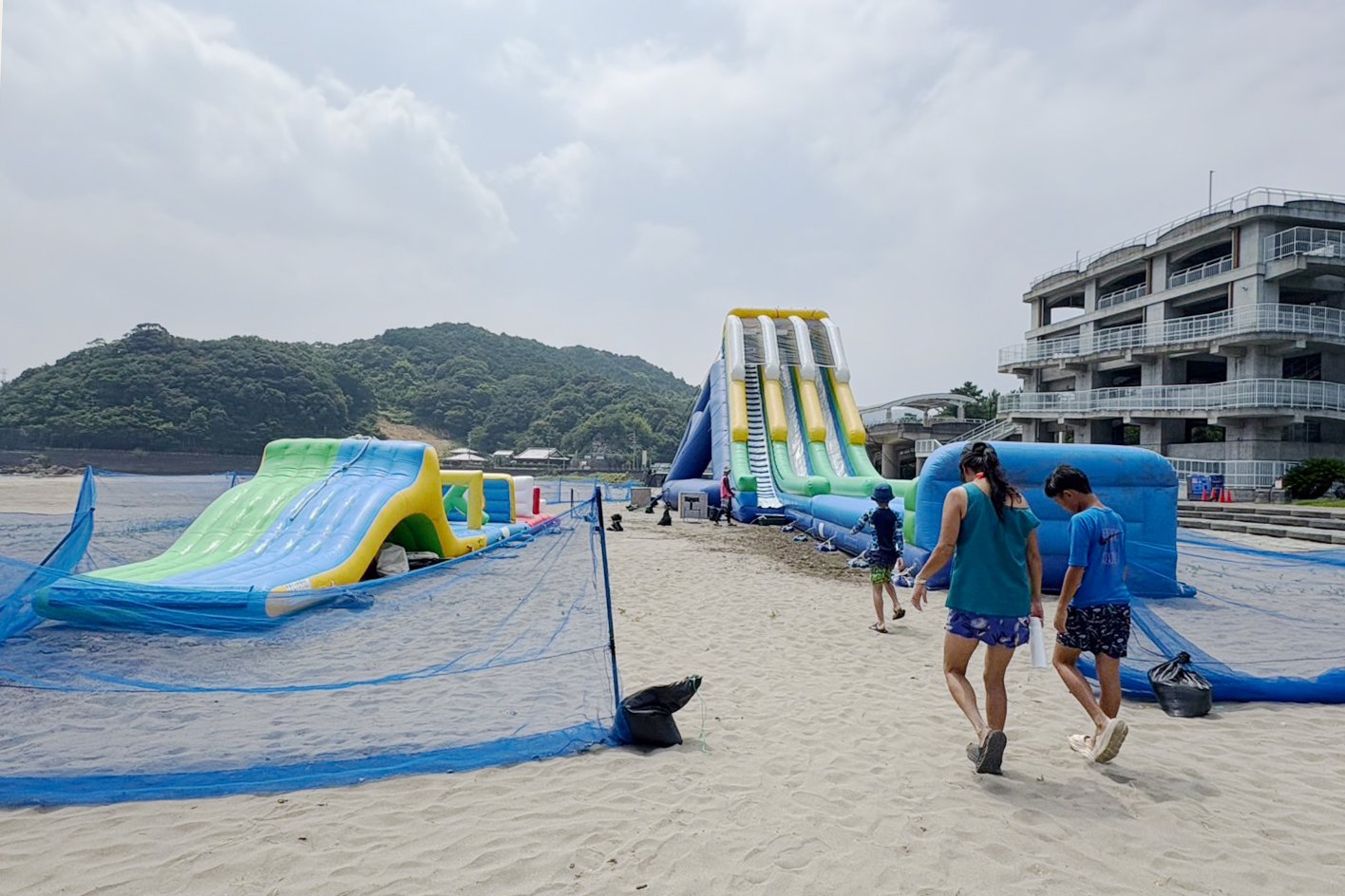 上午:海上體育“沙灘跳躍” → 中午:在東洋町內的飲食店吃午飯 → 下午:巨型滑梯+悠閒的海水浴