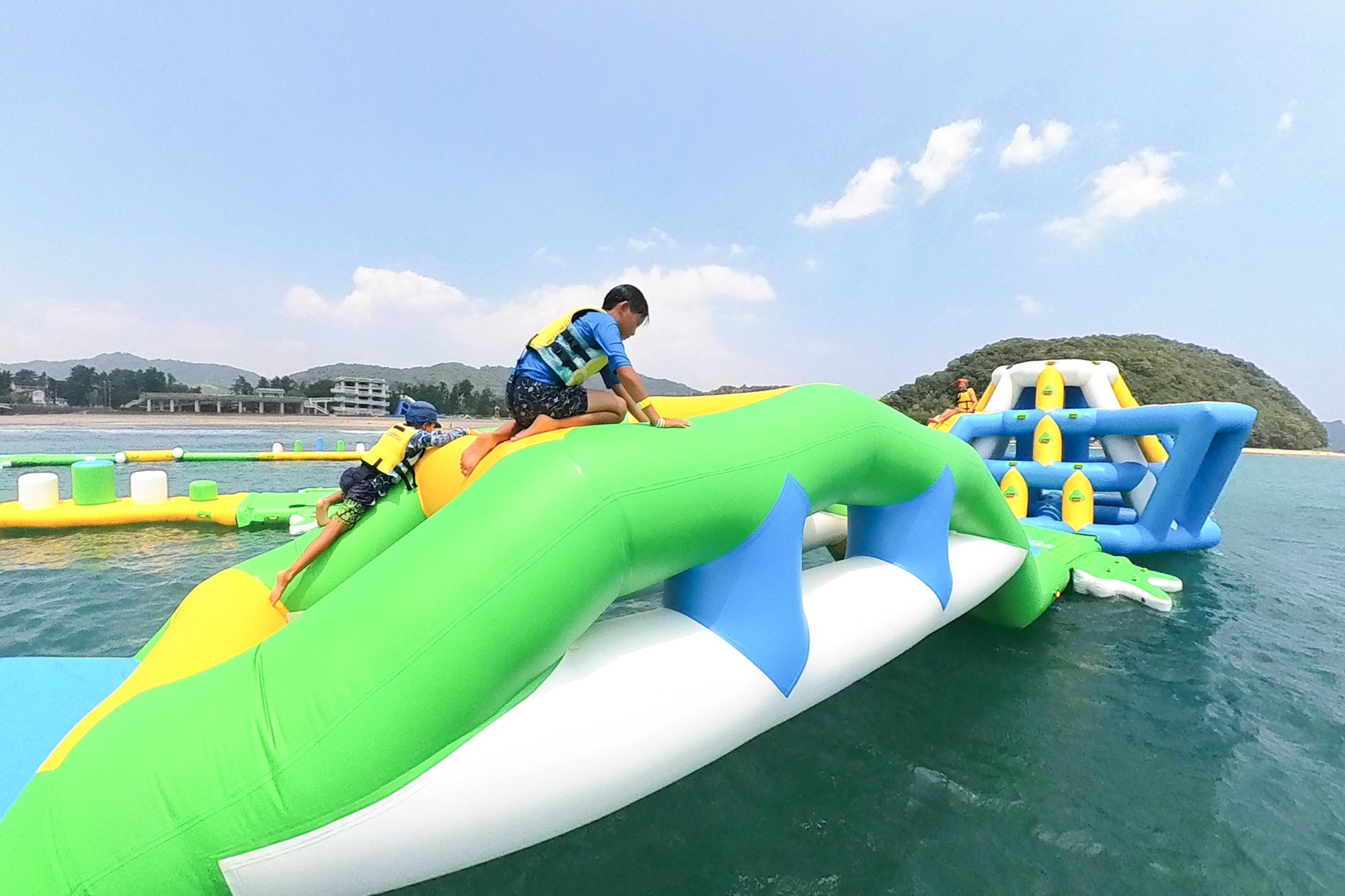 漂浮在海面上的是用空氣膨脹起來的巨大遊樂設施。