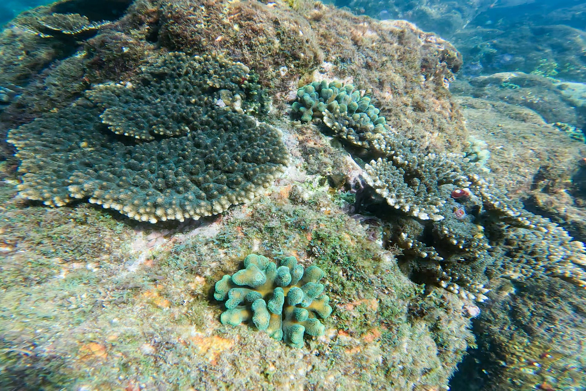 我驚訝於水的美麗超出了我的想象。兩人一邊確認彼此的安全一邊朝著浮潛點前進。
