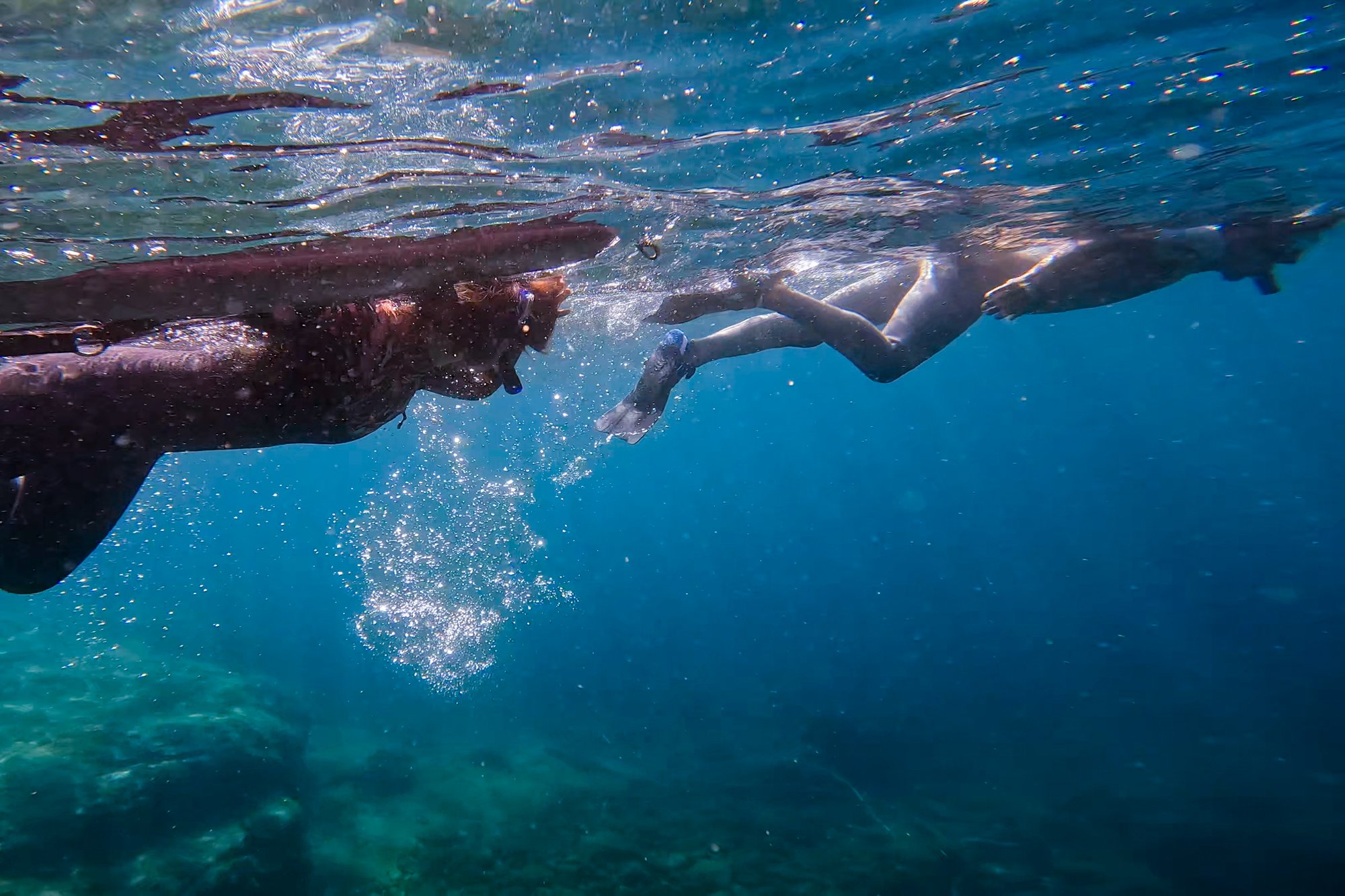 “水中的景色太美了,有點驚訝。我覺得高知的水很乾淨,所以食物也很好吃。還有兩個人可以共享同樣的景色也不錯。兩個人在同一個地方移動的話會感覺更安全。”龍太先生從平時開始就和兩個人一起享受大海的樂趣。