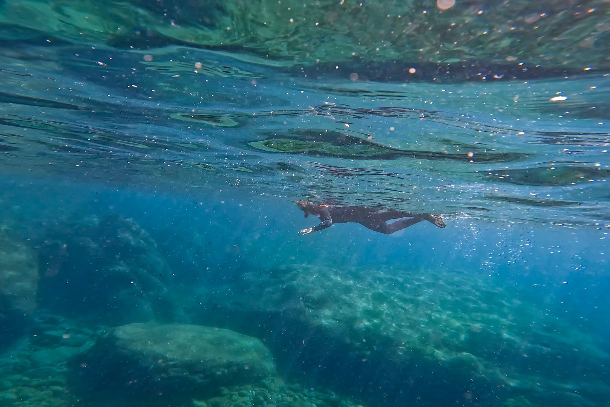偶爾,一邊在岸邊休息一邊確認下一個要點,沉迷於在移動的地方可以看到的水中的景色。可以感受到與衝浪不同的大海的魅力。