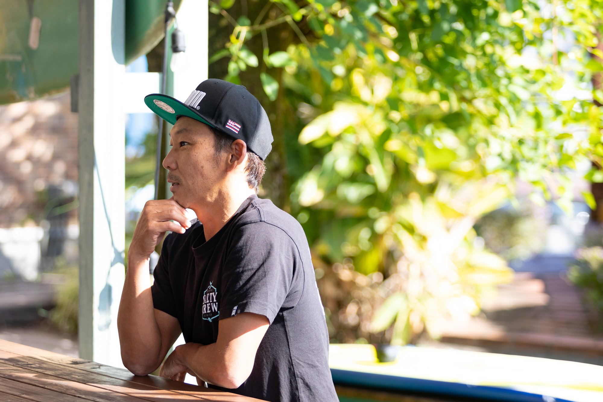 高中畢業後,一邊打工一邊磨練衝浪的能力,23歲左右移居高知縣的金澤先生。在那之前,據說還訪問了全國各種各樣的衝浪景點,但是因為“作為基礎的話,到現在為止看過的最美的海的地方比較好”的想法,所以選擇了高知。其中選擇生見海岸的理由是自己開始衝浪的契機,離關西比較近,雖然是有名的衝浪景點,但是因為地理上的不利,人很少,這也是決定因素。