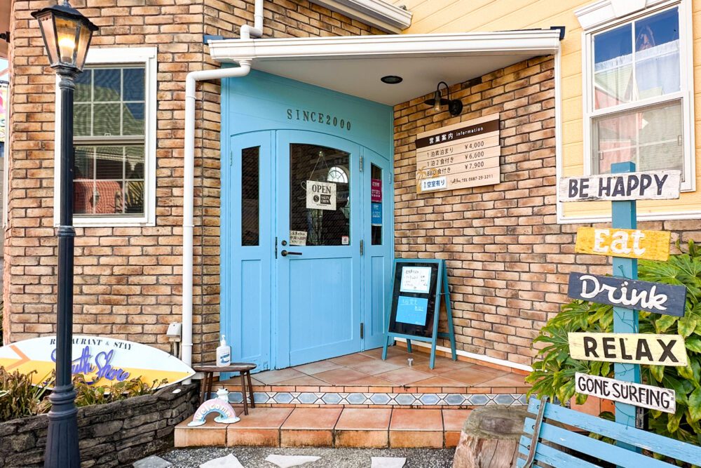 生見海岸周邊是一片蔚藍的大海,色彩繽紛的建築物,彷彿參觀了國外的海灘度假地。在這個區域的一角開設店鋪的“南岸”是金澤先生2000年開業的住宿設施兼餐廳。客房從1人房間到5人房間,設有15個豐富多彩的房間。