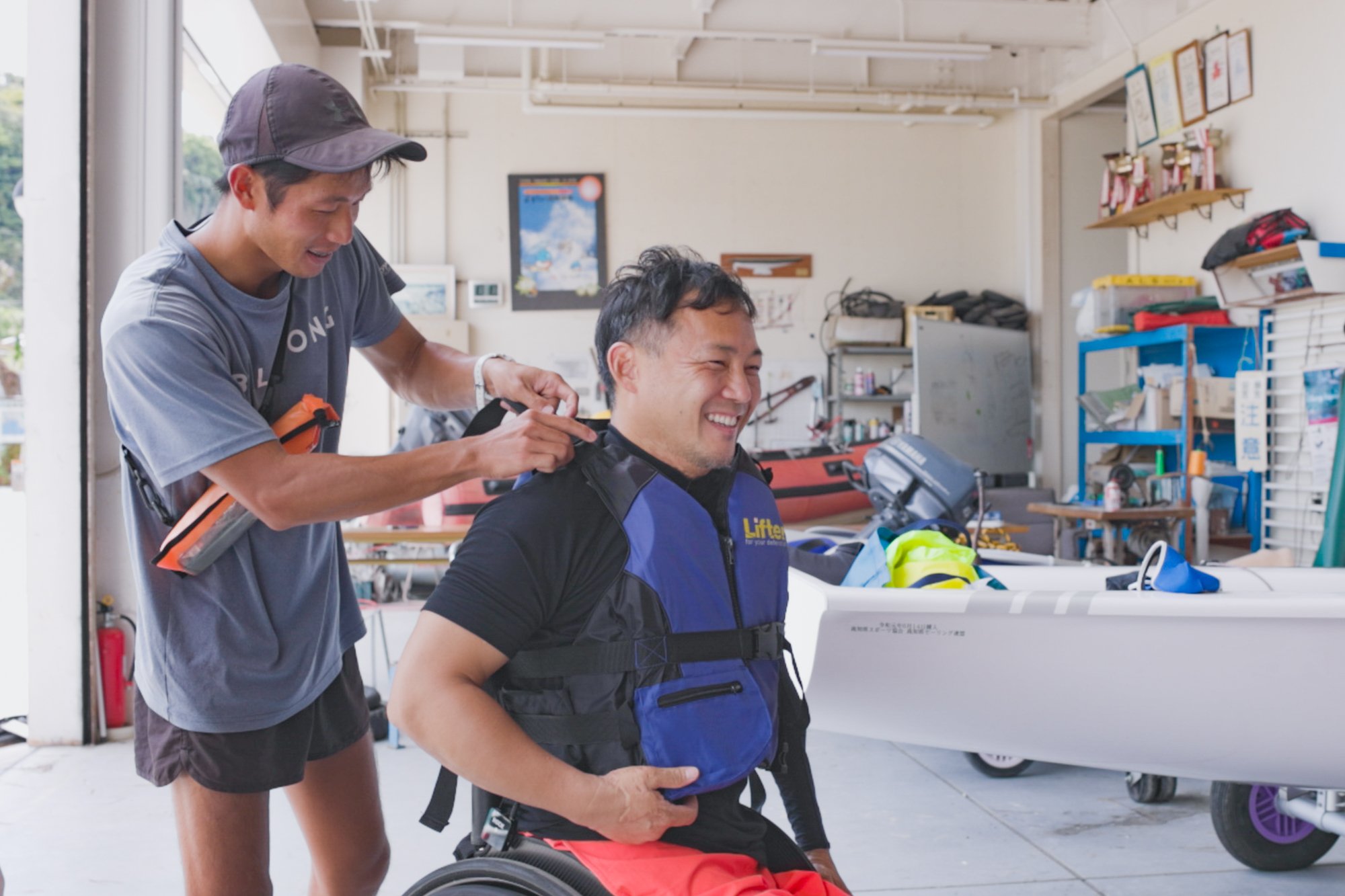 “而且,關於輪椅,比如輪胎大的沙灘用、輕結實的、容易支持的東西,我想如果能產生更多的東西就好了。這樣的話,誰都可以享受海洋活動吧”。