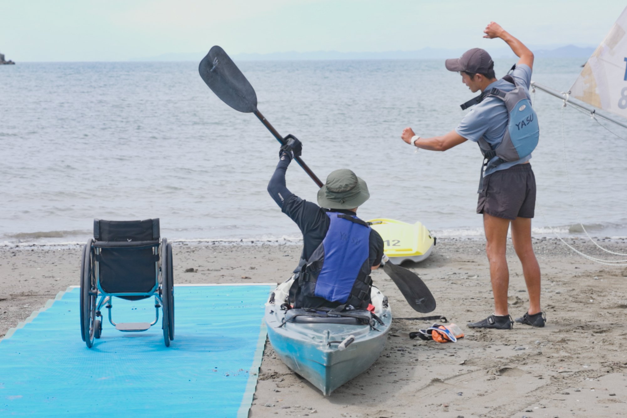 輪椅橄欖球的池透暢選手,在環球海灘體驗皮艇和帆船!