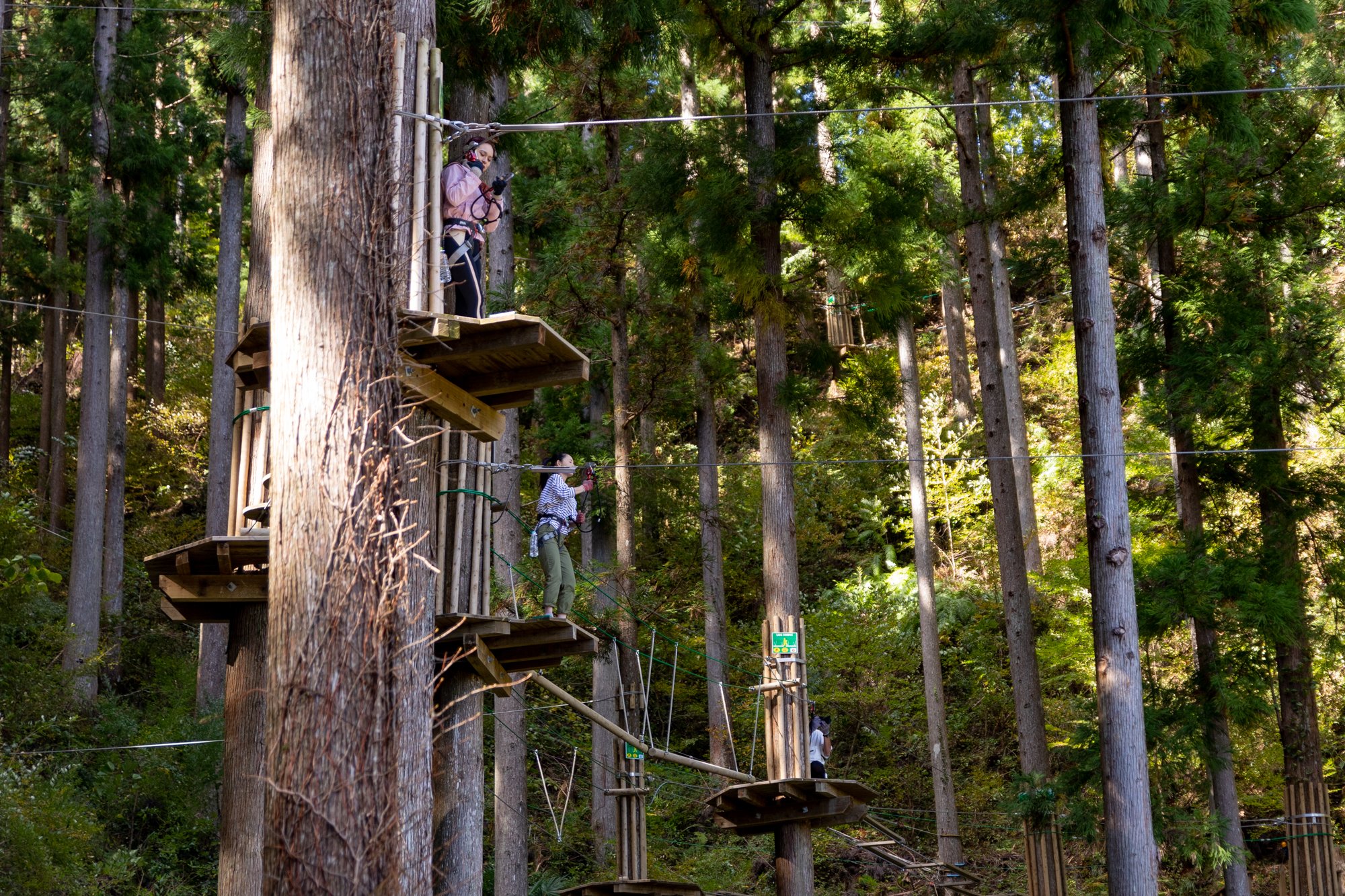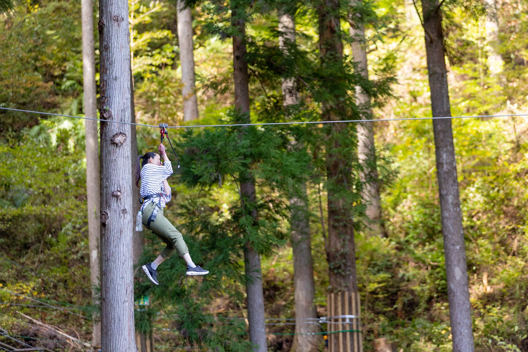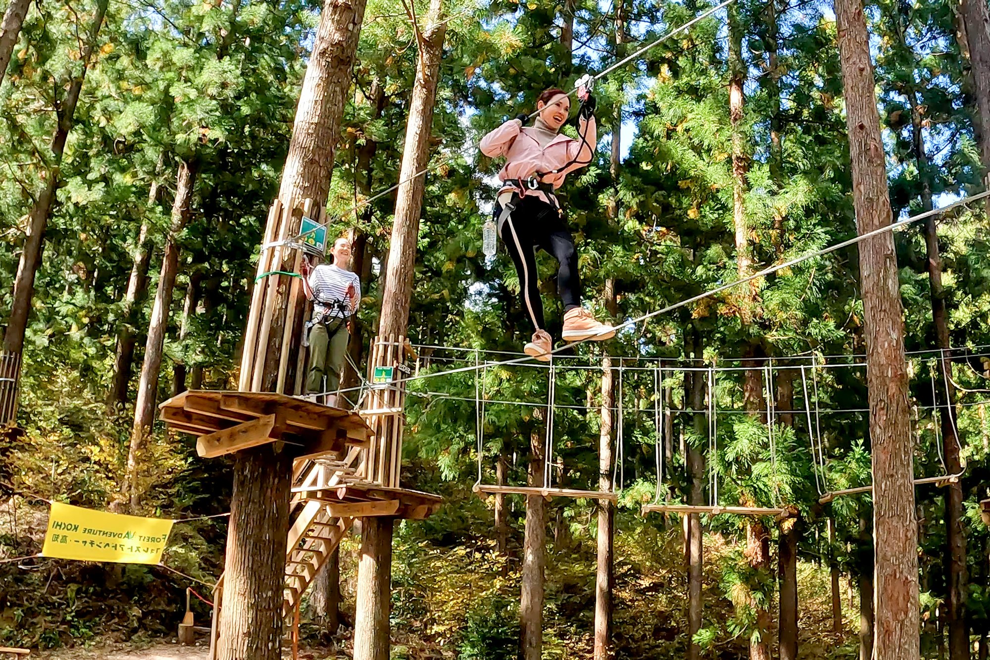 《森林冒險》是起源於法國的森林活動。是利用山的起伏和樹木的高低差來享受的自然遊樂設施。不是開發森林,而是以利用森林原樣的地形建造公園為特徵的設施,在最低限度抑制對環境的負荷的同時,製作了充滿魅力的體育運動。在森林冒險高知,根據內容和難易度設置了3個路線,是即使是第一次來的人也能安心享受的設施。