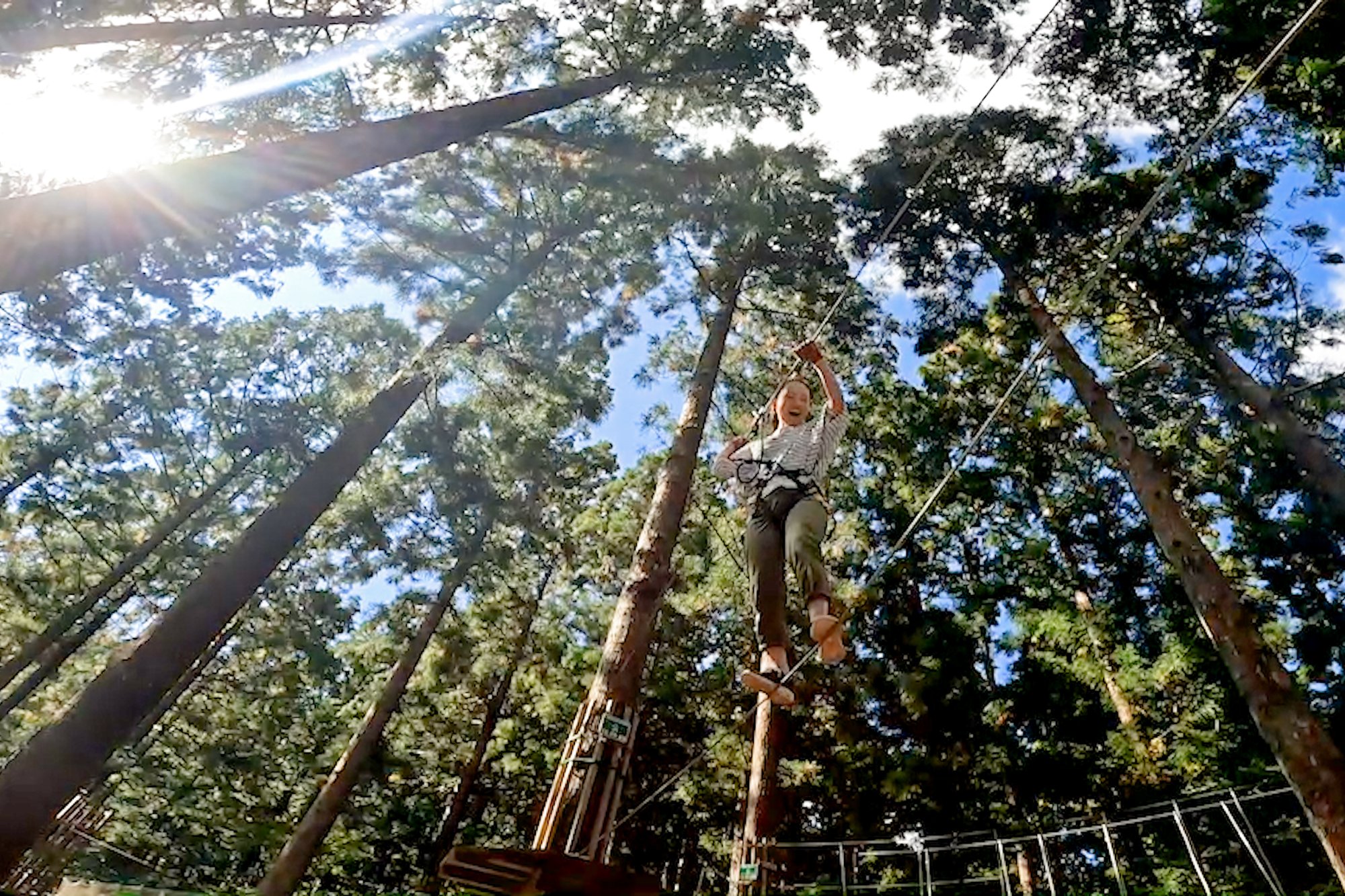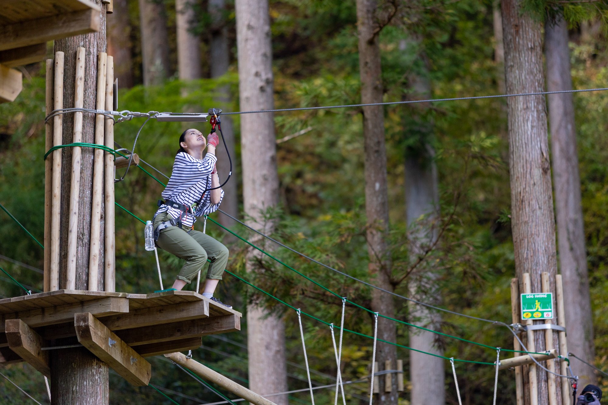 在森林冒險高知,也有身高110cm以上的孩子可以使用的路線。另外,各路線按難易度分開,是家人、朋友等各種各樣的人都能享受的活動。