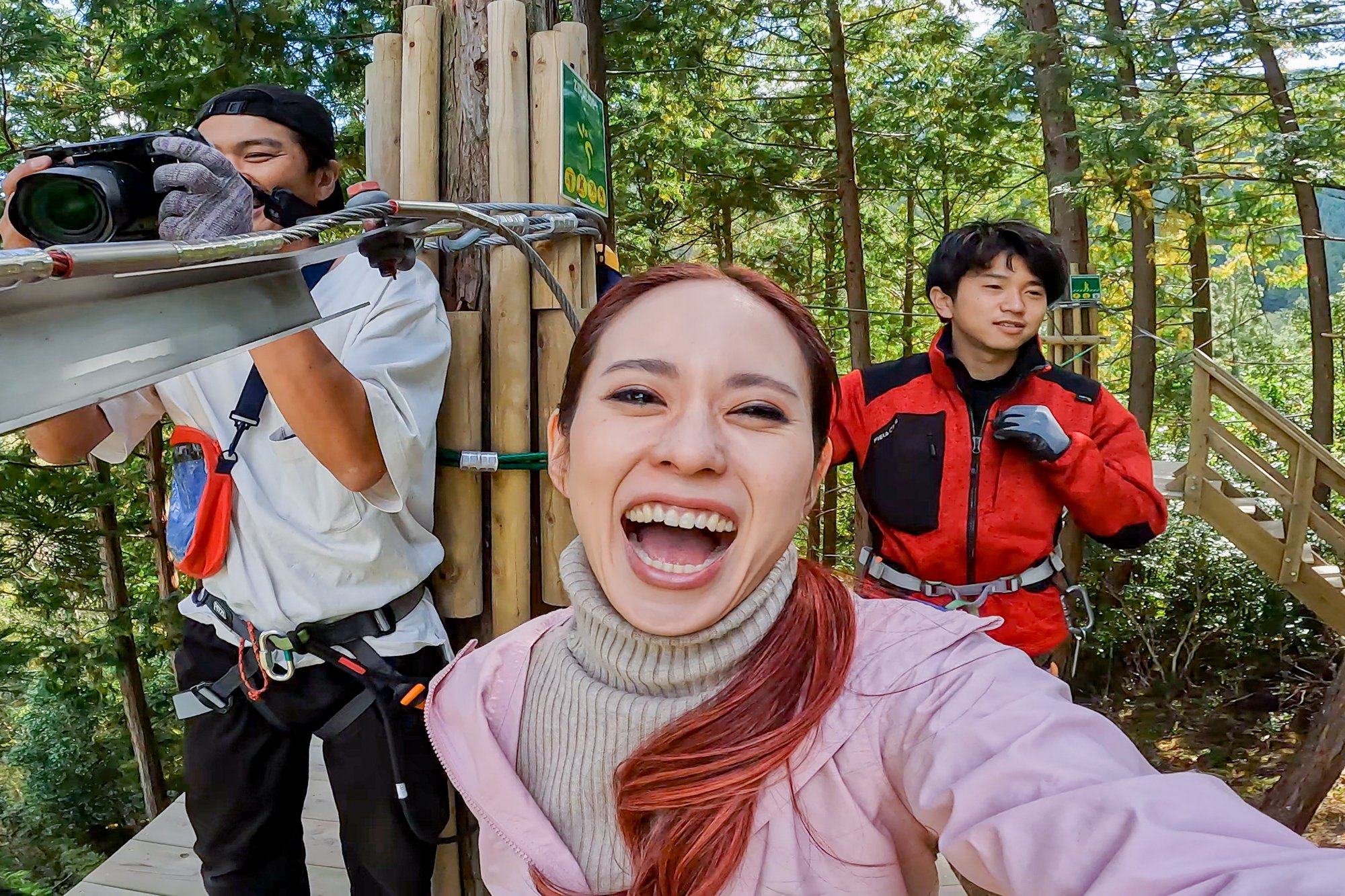 擁有燒烤野營指導資格的伊藤說:“我喜歡在大自然中度過,像去單獨露營一樣,但我覺得也有這樣積極的享受方法。如果是遊樂園的話,大概是不行的,但是在自然的森林裡接觸了自然的樹,稍微得到了勇氣,高的地方也沒問題,能體驗到拉鏈線,有了新的經驗。能做的事情增加了,我很開心,想給自己獎賞。”我收到了充滿上進心的感想。