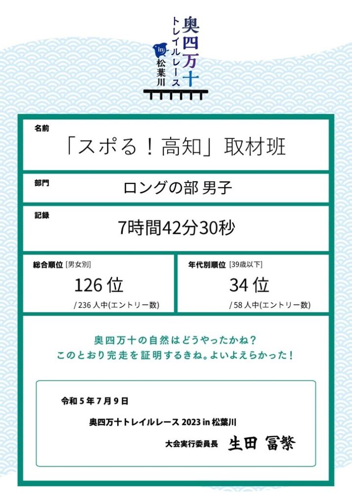 奧四萬十TRAIL比賽對於自然愛好者和跑步愛好者來說,真的是一個很有魅力的活動。可以體驗到美麗的景色和挑戰,還有和當地人的交流等珍貴的體驗。下次舉辦的時候,請務必參加。