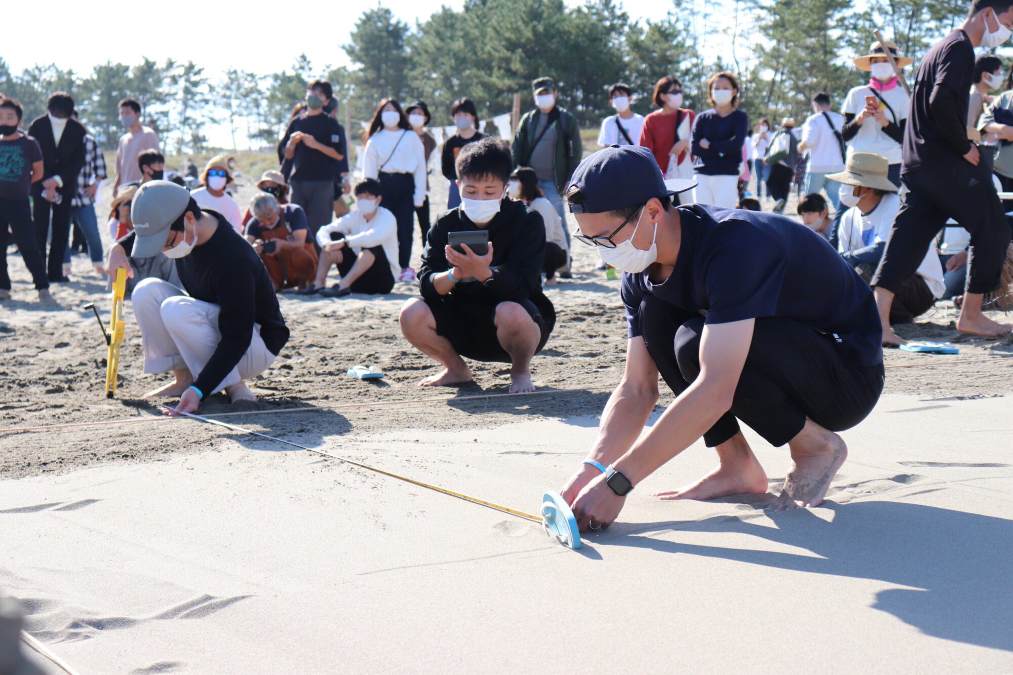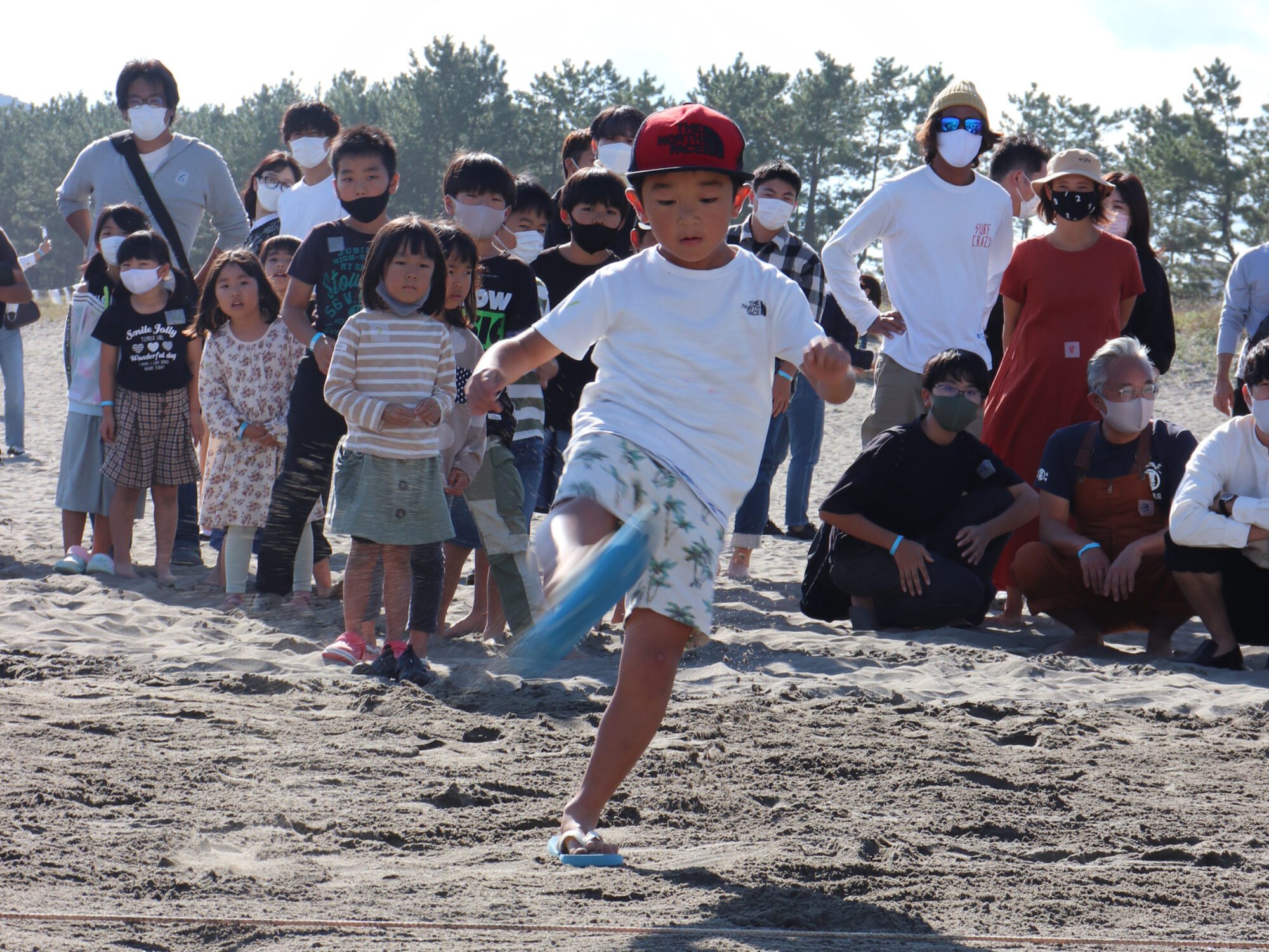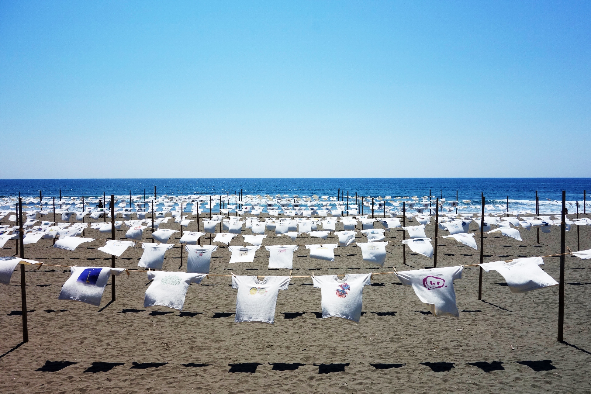 將T恤比作畫布,描繪了各種各樣充滿個性設計的作品在沙灘上翩翩起舞的“T恤藝術展”。在搖晃著很多T恤的沙灘上製作長35米、寬5米的沙外套,把沙灘涼鞋踢得很遠,比距離的是“沙灘飛大會”。