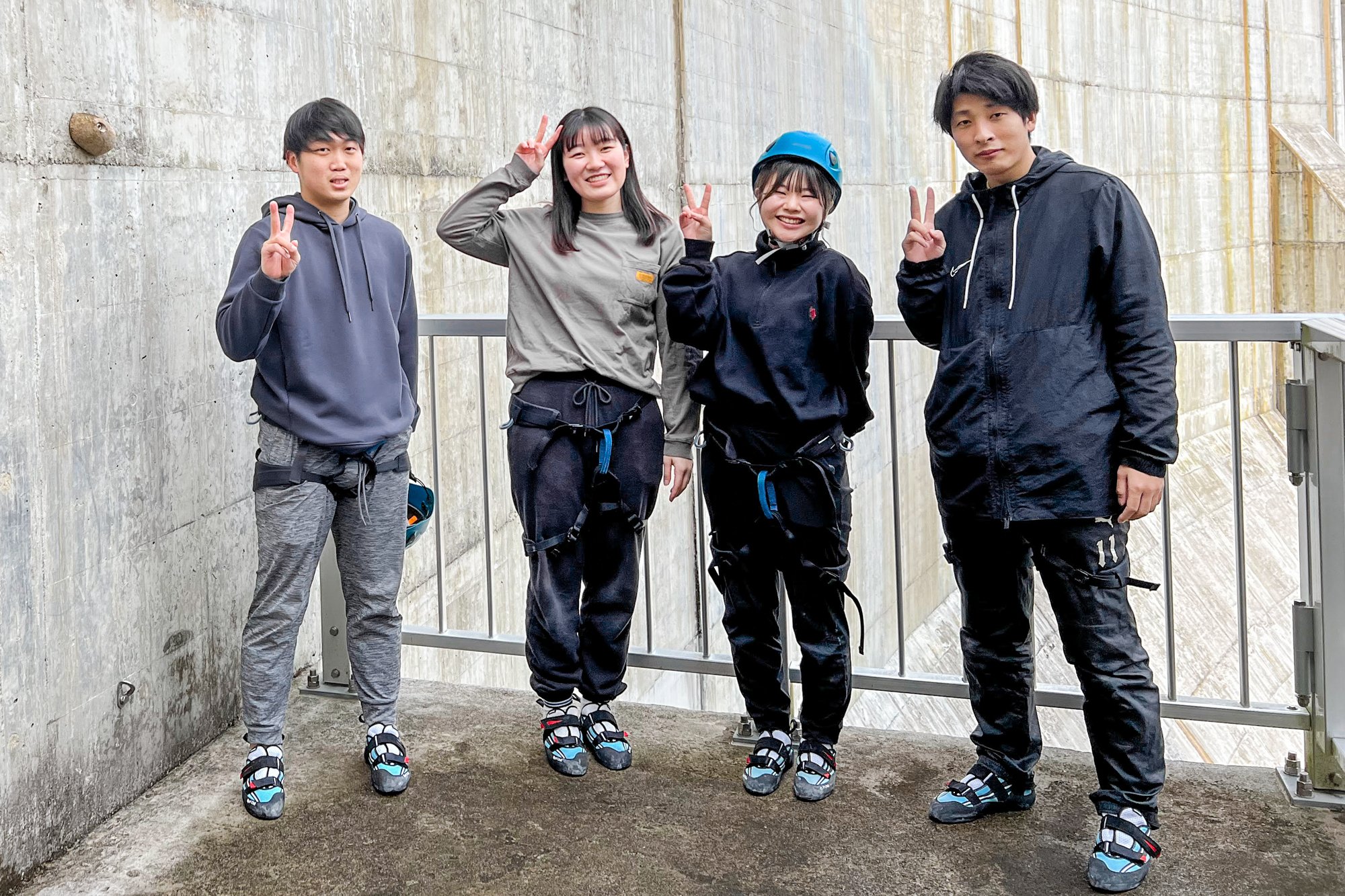 學生們到訪的橫瀨川水壩位於從高知站乘車2小時40分鐘左右的宿毛市。體驗了在宏大的規模中享受的驚險滿分的攀岩。