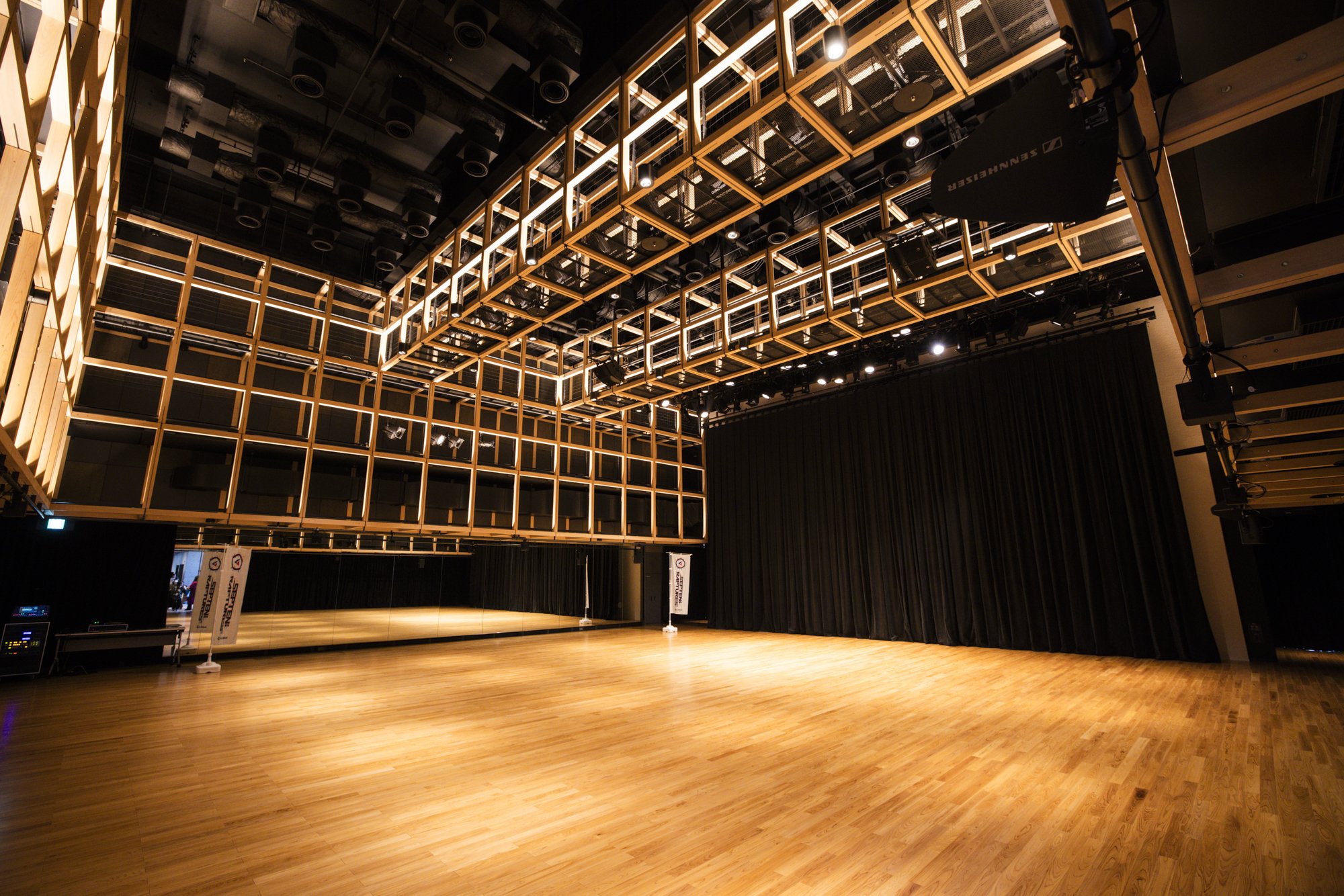 1樓還有鑲著鏡子的小禮堂“旋轉大廳”。除了可以用於彩排之外,還可以設置舞台和照明等,容納360人。除此之外,還配備了隔音工作室,可以用於練習和活動等廣泛的用途。