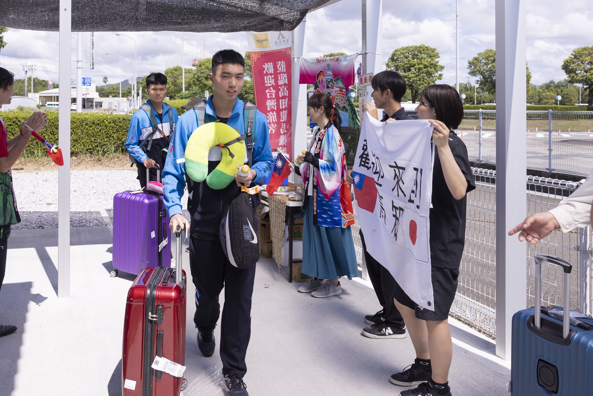 選手和教練們利用定期包機到達高知龍馬機場。在機場,以高知工科大學的學生為首的相關人員迎接了一行。