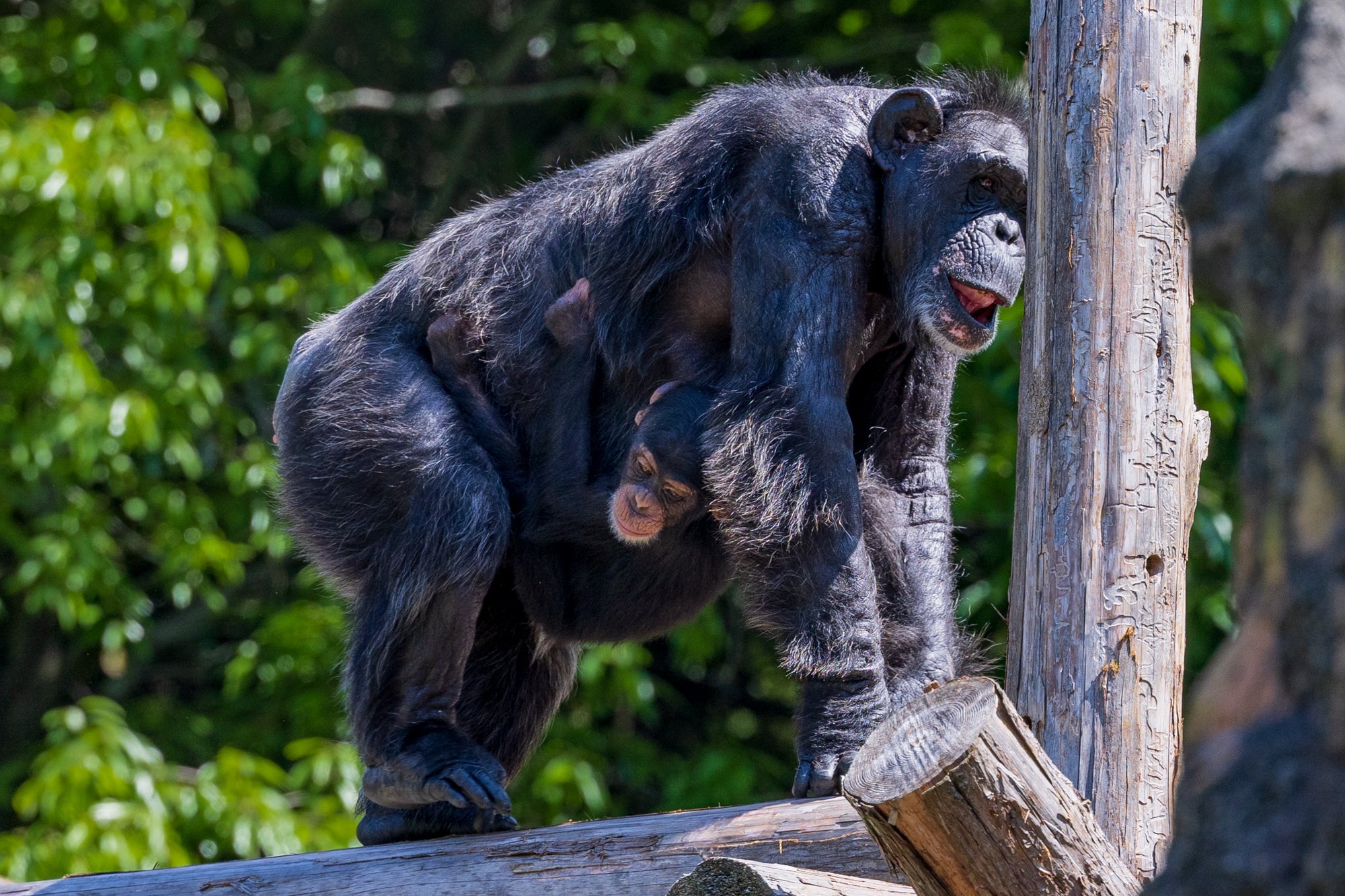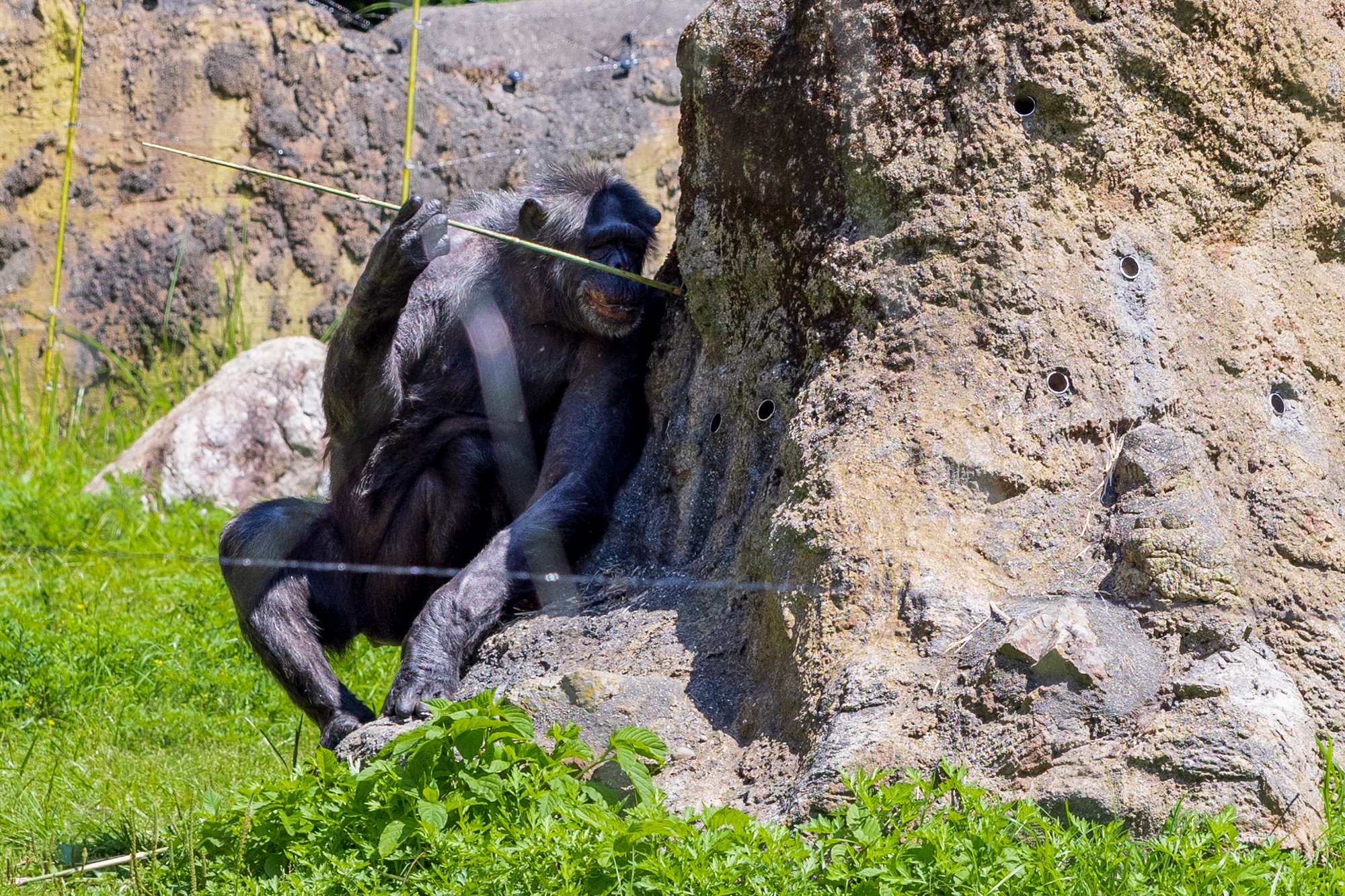 沿著溫帶森林前進,接下來到達熱帶森林。熱帶主要分布在東南亞、非洲和中南美。在沒有籠子的廣大展示場,黑猩猩群悠然自得地生活著。