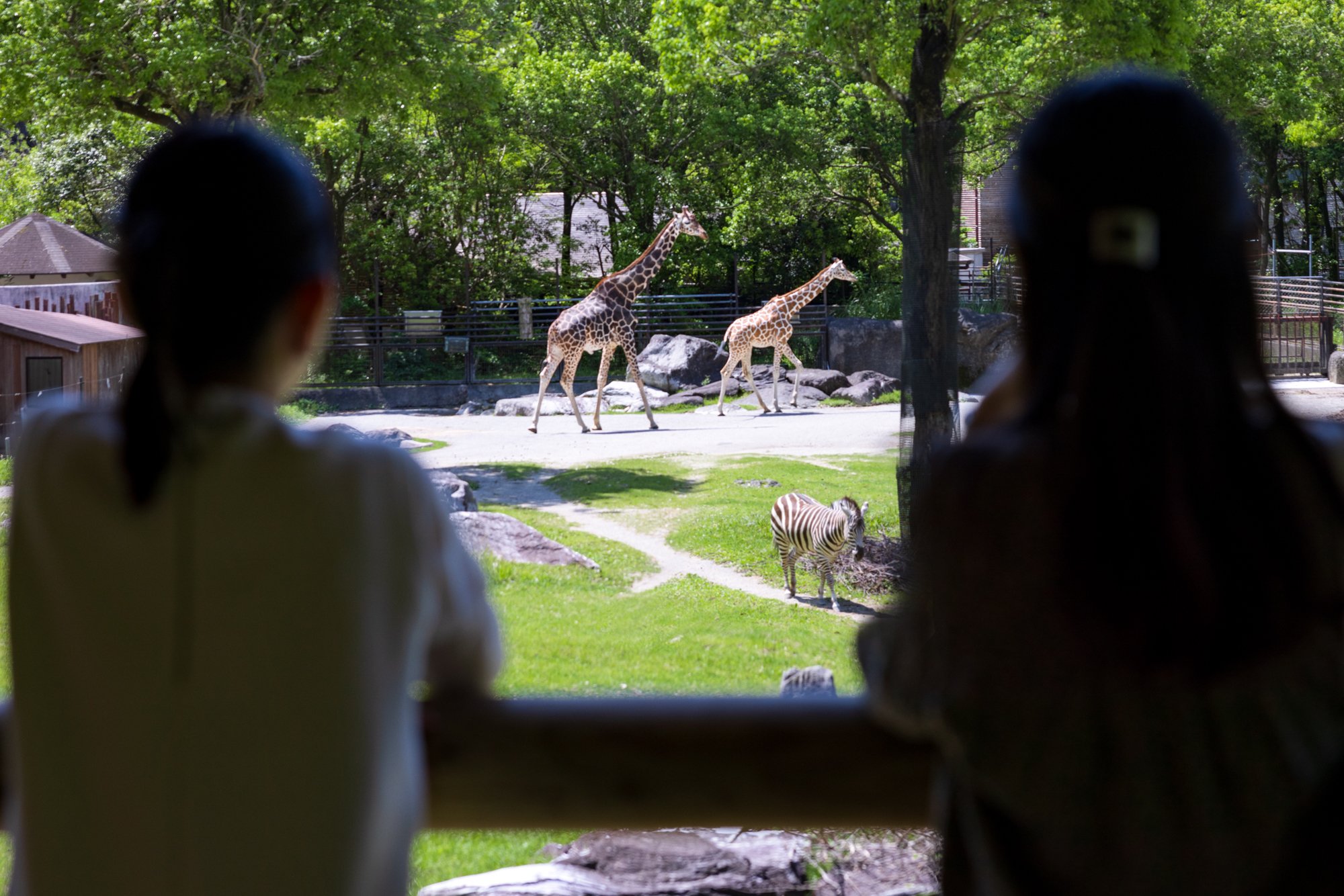 非洲、澳大利亞地區有薩凡納大展示場,可以看到夾著草的氨基林和格蘭特斑馬。雖然看起來像是阿米基林的父母和子女,但實際上是一對琳太郎和儂。