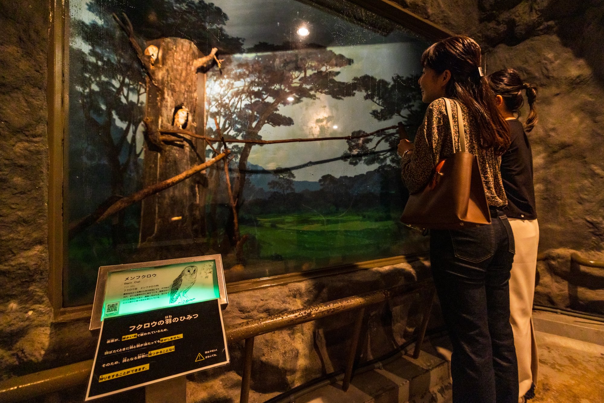 門貓頭鷹和在黑暗中飛來飛去的埃及羅塞特奧蝙蝠等,可以看到夜行性動物的洞窟區域。