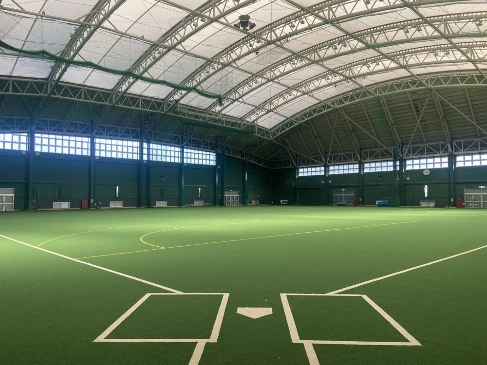 應對惡劣天氣的室內運動場,屋頂采用半透明的特氟隆樹脂,確保了自然光的采光。一面鋪滿了人工草坪,面積也很大,是非常方便的設施。