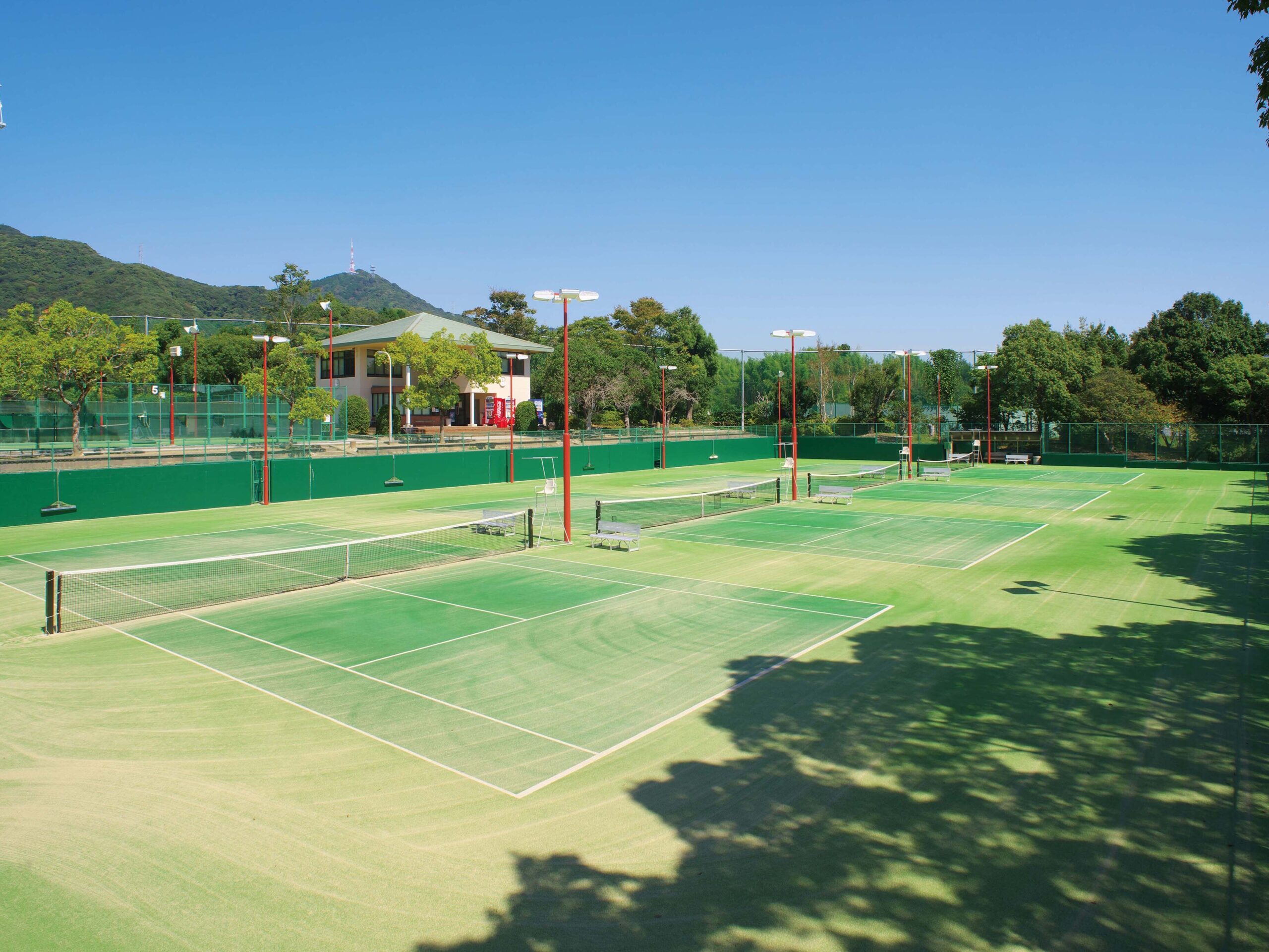 采用全天候型砂人工草坪。軟硬式都可以使用,除了16面網球場之外還附帶了俱樂部,也可以舉辦全國大會等大型大會。也有夜間可以使用的大衣,包括普通人在內每天都有很多人使用。
