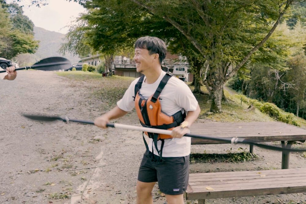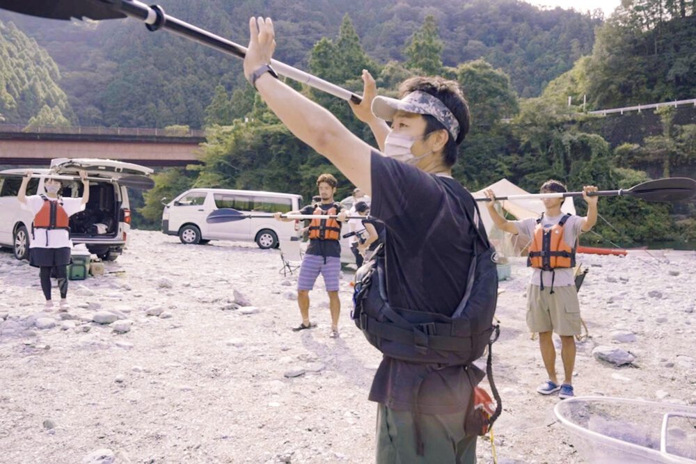 一邊欣賞到“仁淀川戶外中心”途中的景色,一邊到達設施的佐藤一行。體驗是在500米左右的區間周遊,清水先生說:“從這裡到大海!”幹勁十足!穿著救生衣,學習了腰包的拿法和皮艇的劃法等之後,下到河原,對眼前廣闊的仁淀川的美麗感到興奮。