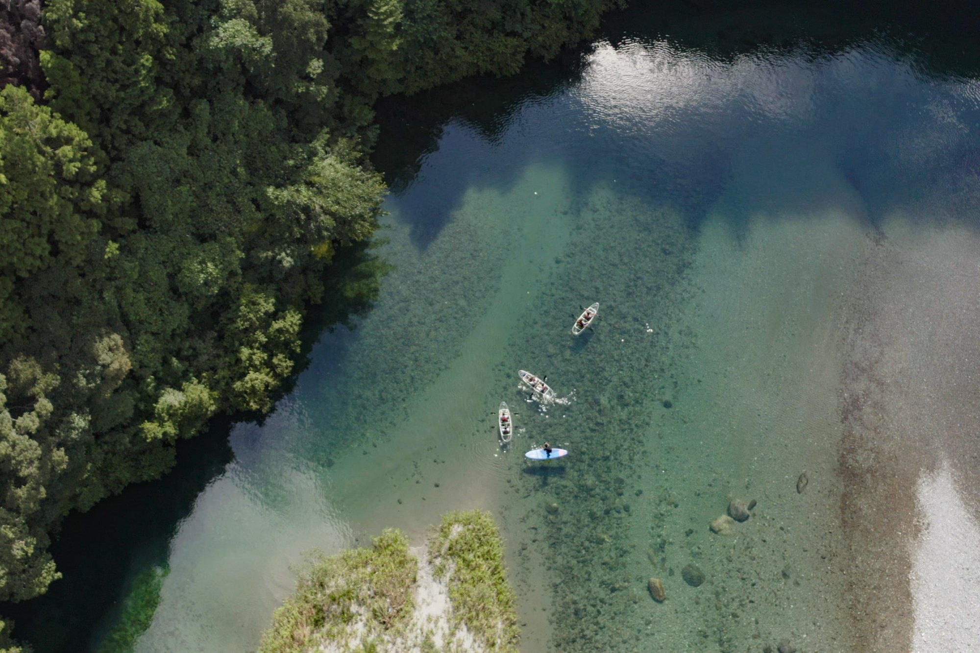 在能更加感受到仁淀川之美的上游區域設有設施的“仁淀川戶外中心”,在當地導遊的帶領下可以享受皮艇和SUP。因為準備了一套用具和救生衣,所以如果有換衣服和毛巾等的話可以輕鬆體驗。