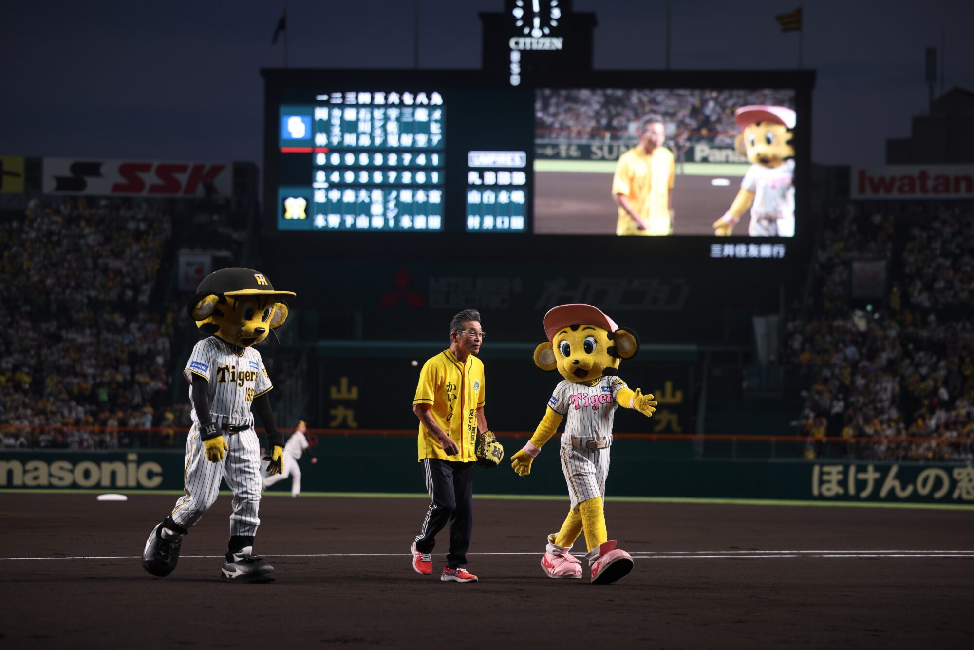 擔任吉本新喜劇GM的間寬平在大阪的人氣非常高,一登場球場,會場上響起了驚訝的聲音,並以熱烈的掌聲歡迎。